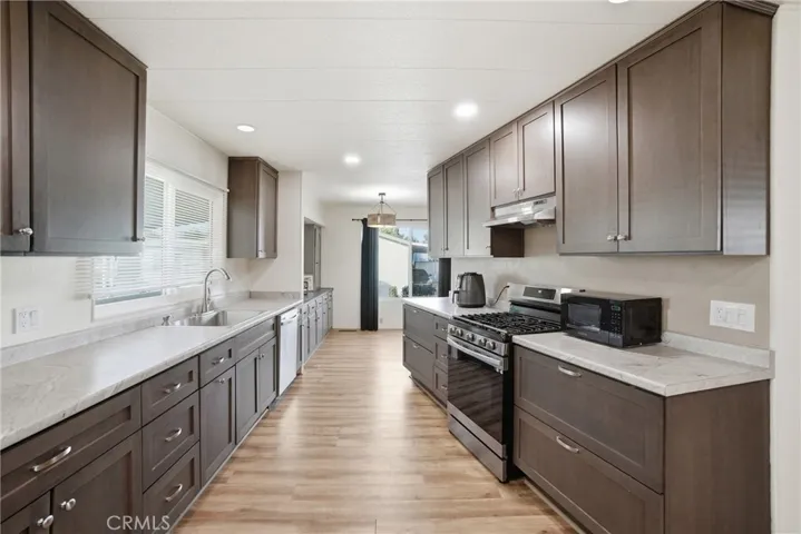 Don’t miss out on seeing this very clean, light, and bright home, beautifully updated and truly move-in ready. The seller has puta new cover/seal on the roof and upgraded the electrical panel. The open floorplan is enhanced by stylish vinyl flooring, recessed lighting in some areas, and a cozy faux fireplace that adds warmth and charm. The updated kitchen and bathrooms offer a fresh, modern feel, while built-ins in the dining area provide both character and functionality. The spacious primary bedroom features a large closet and an en suite bathroom with a new vanity. Enjoy relaxing on the large front porch, perfect for morning coffee or evening unwinding or the beautifully landscaped enclosed side yard with gravel. The back door leads to a double covered carport and ample storage in the included shed. Community amenities include a pool, gym, and clubhouse. Ideally located near Lamplighter Family Park, schools, the YMCA, hiking trails, and just a short 10-mile drive to the beach. Don’t miss the opportunity to make this charming Camarillo home your own.