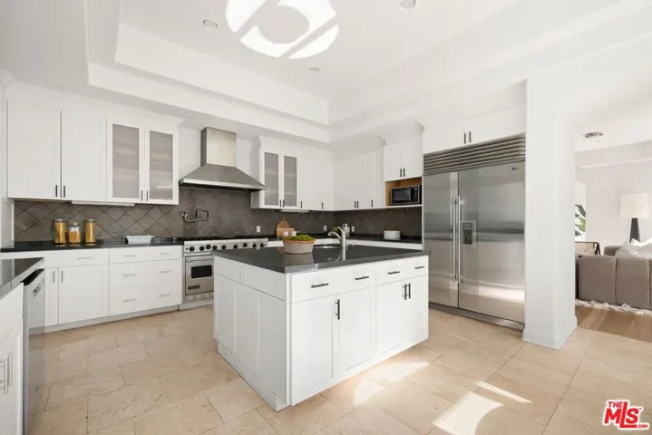 Back on the market at an unmatched price per square foot. This thoughtfully designed residence combines clean, modern architecture with exceptional scale and natural light throughout. Ideal for art collectors and entertainers alike, the home features expansive walls, soaring ceilings, and skylights that illuminate its open layout. The main level offers formal living and dining rooms, a large entertainment room, and a chef’s kitchen with premium appliances. Six bedrooms include a stunning primary suite with dual spa-style bathrooms and oversized walk-in closets. Two additional en-suite bedrooms on the same level offer both privacy and proximity, perfect for family living. On the lower level, two guest suites- each with its own living area and kitchenette- provide comfort and flexibility for extended stays or multigenerational living. Additional amenities include a library, gym, auna, custom built-ins, wine storage, and multiple wet bars. French doors open to private balconies with sweeping canyon, city, and ocean views, while the backyard offers a pool and spa designed for entertaining. Located in one of Bel Air’s most prestigious neighborhoods, this home delivers extraordinary space, luxury, and lifestyle. Agent is related to ownership.