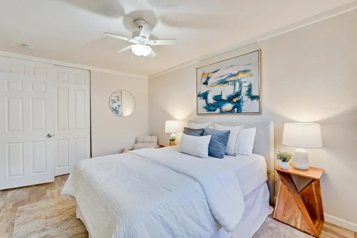 Welcome to this nicely appointed, single-story, four-bedroom, 2-bathroom home with an attached garage in San Jose’s Cambrian Park neighborhood. This inviting residence seamlessly blends comfort and functionality. The modern kitchen features granite countertops, stainless steel appliances (including a microwave and dishwasher), a gas range, and recessed lighting, with direct access to the backyard. The interior is finished with durable vinyl plank and linoleum flooring throughout, complemented by forced air heating and PG&E solar panels for enhanced energy efficiency. The front yard includes drought tolerant plants and an amazing citrus tree. The backyard has a nice grassy space with a covered patio, a tool shed, and even a chicken coop. Come see this newly unoccupied gem in Cambrian Park!
