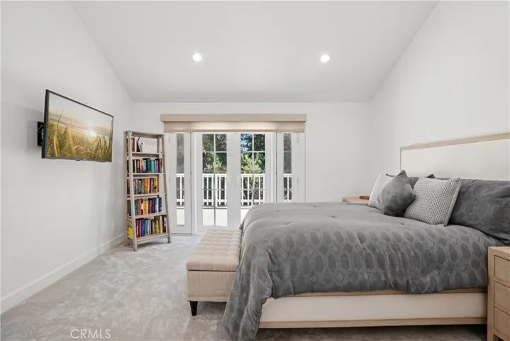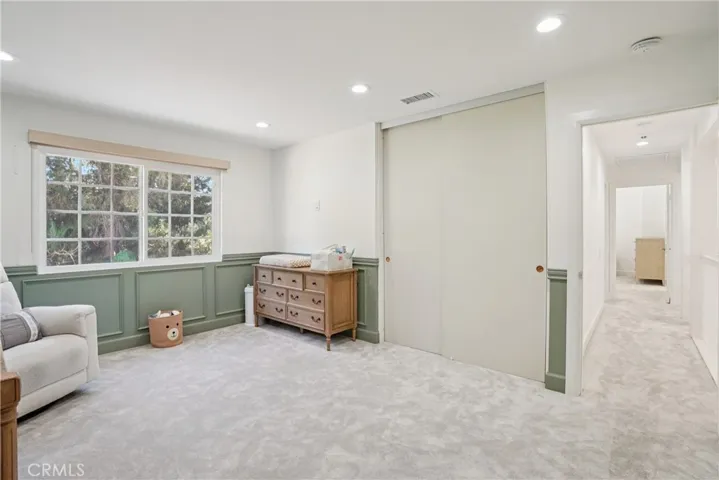 Upstairs, the luxurious primary suite is a true retreat, complete with a private balcony overlooking mature trees and the spacious backyard. The suite boasts vaulted ceilings, recessed lighting, a walk-in closet, and a spa-inspired bath featuring a separate soaking tub, custom vanity, and an oversized walk-in shower. Two additional generously sized bedrooms and a full bath complete the upper level, including a charming children’s room enhanced by a custom-painted mural, adding a unique and whimsical touch.