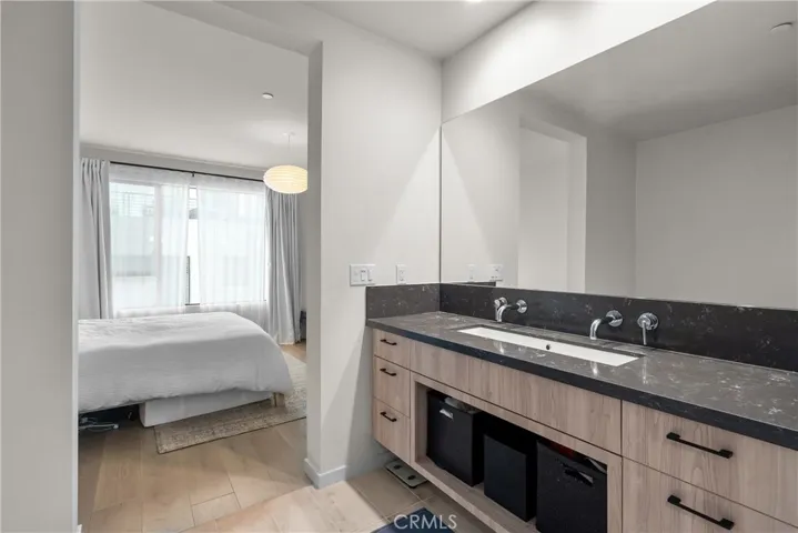 The primary suite serves as a private retreat, complete with a spacious walk-in closet and an en-suite bath featuring a spa-like soaking tub. The two additional bedrooms are generously sized, one of which includes its own en-suite bathroom along with a full additional hallway bathroom. A rooftop terrace provides an exceptional outdoor setting for relaxing, entertaining, and enjoying sweeping views.
