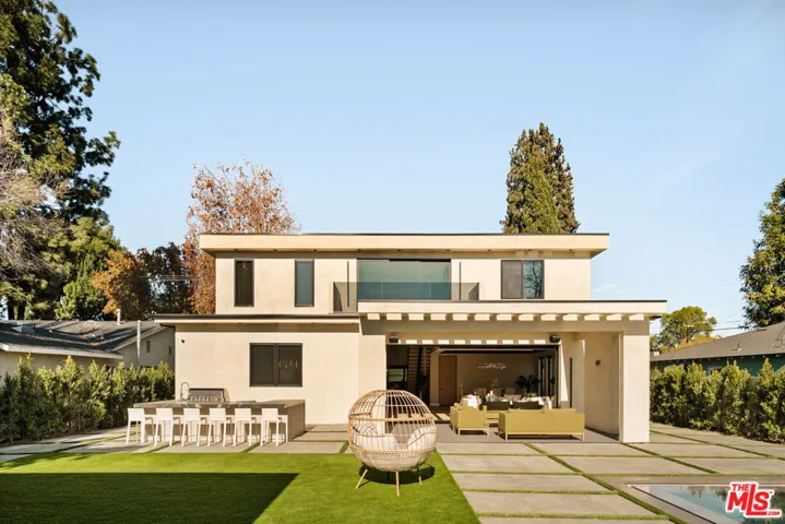 Completed in 2026, this striking new construction luxury estate delivers elevated contemporary living in one of the San Fernando Valley’s most coveted residential enclaves. Set on an expansive nearly 10,000 square foot lot, the approx. 4,252 square foot main residence showcases a refined architectural design built for both impressive entertaining and effortless daily living. A grand entry reveals an open foyer that perfectly greets you, creating an immediate sense of sophistication. At the center of the home, the gourmet chef’s kitchen is a true showpiece, featuring bespoke cabinetry, premium materials, and top tier Thermador appliances ideal for hosting, entertaining, and culinary creativity. Adjacent living spaces flow seamlessly and include a dedicated, state of the art home theater, thoughtfully designed for immersive movie nights, sports viewing, and private entertainment. The thoughtfully designed floor plan offers five generously sized bedrooms and six and a half designer bathrooms, including an indulgent primary suite complete with a spa style bathroom and an oversized walk-in closet. High end finishes, custom detailing, automatic window treatments, and full Control4 smart home integration elevate the living experience throughout. Designed for seamless indoor/outdoor living, the home opens to an approx. 335 square foot patio ideal for al fresco dining. The private backyard oasis features a sleek lap pool and spa, along with an approx. 217 square foot pool house/cabana with its own bathroom perfect for guests, a home gym, or a private office. Moments from Ventura Boulevard, this exceptional property offers convenient access to premier dining, shopping, and lifestyle destinations. A rare opportunity to own a brand-new luxury home that perfectly balances modern design, smart technology, and timeless elegance in a prime Valley location.