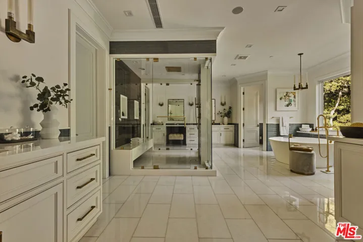 Located in Brentwood’s prestigious Grove Estates, this nearly 14,000-square-foot gated residence offers exceptional privacy and sweeping canyon and Getty Center views. Set on over half an acre, the home is designed for elevated living and entertaining, featuring a dramatic entry, chef’s kitchen, and resort-style grounds with a pool, spa, outdoor kitchen, and media lounge. Interior highlights include a private theater, wine cellar, bar, gym, sauna, indoor basketball court, and a 10-car collector’s garage. The expansive primary suite features a spa-like bath, fireplace, dual closets, and private balcony, complemented by multiple en-suite bedrooms and separate guest or staff quarters. A rare opportunity for refined Los Angeles living.