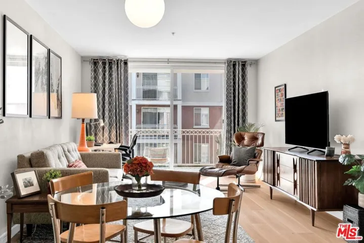 Experience the perfect blend of style, convenience, and modern living with this 1 bed plus 1 bath gem located in the heart of the vibrant Bedford Promenade community. Perched on the 3rd floor, this corner unit offers privacy with minimal shared walls, and an enviable lifestyle, complete with 2 dedicated side-by-side parking spaces and your very own EV charging outlet in the gated parking structure with elevator access. This thoughtfully designed floor plan maximizes every inch of space. Recently updated with chic, contemporary touches, this home features gorgeous new white oak hardwood flooring, a sleek granite kitchen with a spacious island, and new stainless-steel appliances. The newly remodeled bathroom boasts upscale finishes, while the custom closet storage solutions and in-unit washer & dryer (a modest $40 extra monthly HOA fee applies) add practicality to everyday living. A newer HVAC system with a smart thermostat keeps your comfort just a tap away, whether you’re home or on the go. The affordable $500 monthly HOA fee also includes water, trash and all exterior maintenance. Relax on the oversized balcony, where serene views of the meticulously maintained common areas and sparkling pool await. The building itself is brimming with additional resort-style amenities to take advantage of including the fitness center and a community room equipped with a pool table that is perfect for entertaining friends or unwinding after a long day. This condo is ideally situated amidst exciting new developments like the upcoming Stocker Street Creative (a state-of-the-art film studio campus) and the Baldwin Hills Mall redevelopment featuring trendy dining and shopping options. It’s also minutes from SoFi Stadium, LAX, and neighborhoods such as Leimert Park, Culver City, Ladera Heights, and the Westfield Mall (with Trader Joe’s!). For commuters, the proximity to the Metro K-Line station (just .25 mile away) and the Expo/Crenshaw station (1.5 miles away) offers easy access to Downtown LA and beyond. Super clean and move-in ready, this stunning condo is your chance to enjoy spring and summer by the pool while basking in the comfort and convenience of a modern home in a prime location. Don’t miss this rare opportunity to own a slice of LA living at its finest.
