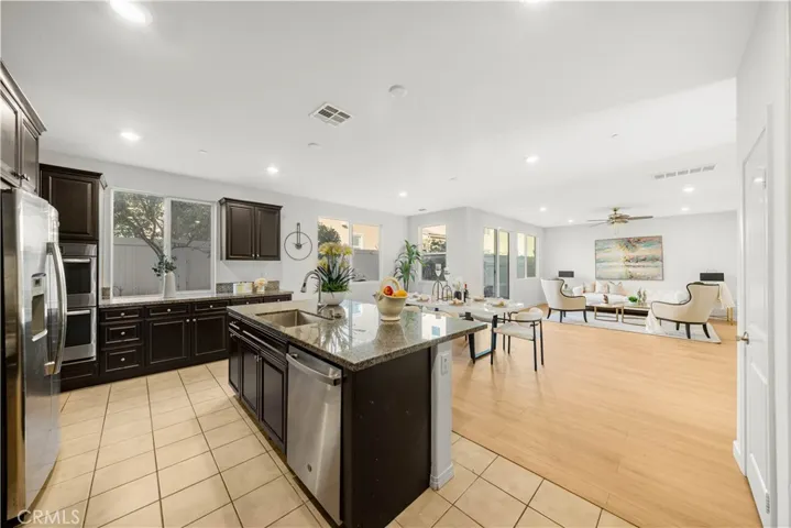Welcome to 6956 La Rochelle Way in Chino, a rare 2018-built next-generation home that offers an ideal balance of space, functionality, and excellent income potential. This well-maintained residence features 5 bedrooms and 3.5 bathrooms across 3,156 square feet of bright living space on a 4,200-square-foot lot, with a desirable south-facing orientation that provides abundant natural light throughout the home. The interior was just fully upgraded last week with premium 15mm thick laminate flooring throughout, offering superior durability, sound reduction, and a solid underfoot feel, complemented by new modern baseboards for a clean, cohesive finish. A brand-new garage door further enhances both functionality and curb appeal. The home presents in move-in-ready condition. One of the most valuable features of this home is the fully independent attached suite with a private exterior entrance, also separated from the main house by a lockable interior door for complete privacy. The suite includes its own living room, kitchenette, dedicated laundry area, refrigerator, microwave, and a spacious bedroom with a walk-in closet and en-suite bathroom, making it ideal for multi-generational living or rental income of approximately $1,750–$2,000 per month. The backyard is enhanced with mature fruit trees including fig, lemon, orange, tangerine, and guava along with different flowers. Offered at $1,086,000 with approximately 1.3% property tax and a low $134 monthly HOA, this home offers a compelling ownership opportunity, where rental income can significantly reduce the monthly carrying cost compared to many smaller condos.