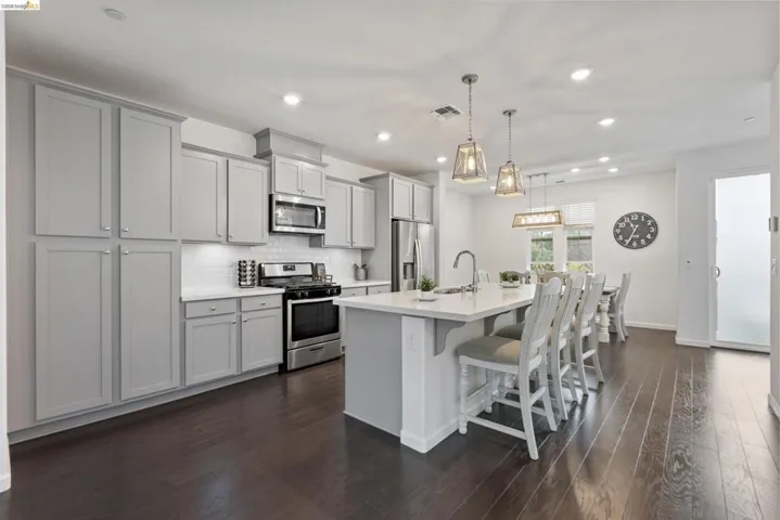 Rare Corner Home in Sought-After Bishops Ridge | Built in 2020 Rare corner home offering exceptional privacy and natural light with only one shared wall. Windows along the open side flood the home with sunlight, creating a bright and airy feel throughout. Built in 2020 and impeccably maintained, this 4-bedroom, 3.5-bath home offers 1,918 sq ft of thoughtfully designed living space with soaring ceilings and an open-concept layout ideal for everyday living and entertaining. The gourmet kitchen features quartz countertops, a large island, stainless steel appliances, and a gas range, flowing into the living and dining areas and out to a private balcony. A first-floor bedroom with en-suite bath is perfect for guests, office, or multi-gen living. Upstairs, the spacious primary suite includes a walk-in closet, dual vanity, and walk-in shower. Two additional bedrooms, full bath, and upstairs laundry complete the level. Includes EV pre-wire, tankless water heater, central heat & A/C, two-car garage, playground, and convenient access to Lake Chabot, BART, and major freeways. Corner homes like this rarely become available—experience it in person and feel the difference.