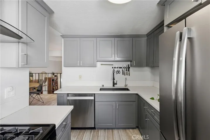 Enjoy comfortable, connected living in this inviting end-unit located within the Park Terrace Village community. This home offers a peaceful retreat with a functional layout designed for easy living. Upon entering, you are greeted by an airy, open living area highlighted by tall ceilings and a fireplace. Glass sliders lead out to a pergola-shaded patio, extending your living space outside. The dining room flows directly into the kitchen, which has been refreshed with updated Shaker cabinets and countertops, as well as stainless steel appliances. The main levels are completed by a convenient half bathroom, and in-unit laundry. Upstairs, the floor plan includes the primary bedroom and two secondary bedrooms. Each room features large windows that capture plenty of natural light, and the full bathroom on this level offers private access from the primary bedroom. The detached garage offers plenty of space for 2 cars. Beyond your front door, residents have access to community amenities including a pool, spa, basketball court, and clubhouse. This property places you in a central location with easy access to freeways, local dining, and the MainPlace Mall. It is also situated near St. Joseph and CHOC hospitals and local schools, making this a practical and accessible place to call home.