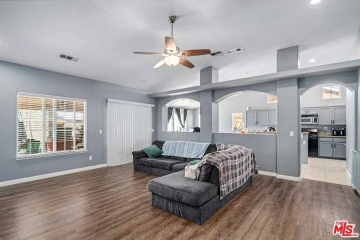 Welcome to this gorgeous upgraded single-story 4-bedroom, 3-bath ranch-style home on a desirable corner lot. Step inside to soaring vaulted ceilings and a spacious family room that opens to a bright, open floor planperfect for entertaining.The large kitchen features granite countertops, LED recessed lighting, an eat-in breakfast bar, and an adjacent dining area ideal for gatherings. The expansive primary suite offers two oversized walk-in closets and a luxurious en-suite bath with dual sinks and a sunken tub.Three additional generously sized bedrooms provide flexibility, with one ideal for a home office. Outside, enjoy a pristine backyard complete with a covered patio, lush grass, a separate dog run, and potential RV parking.