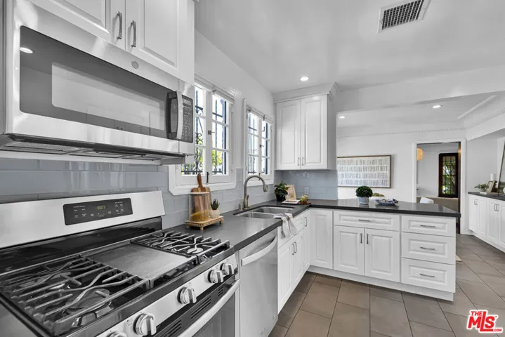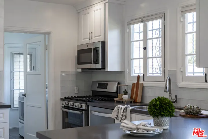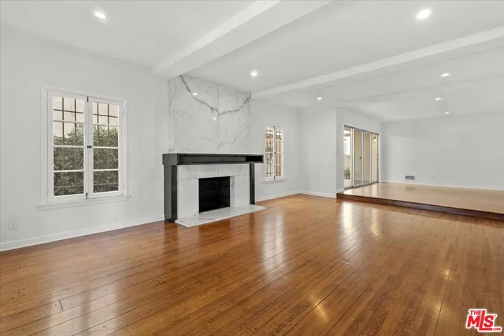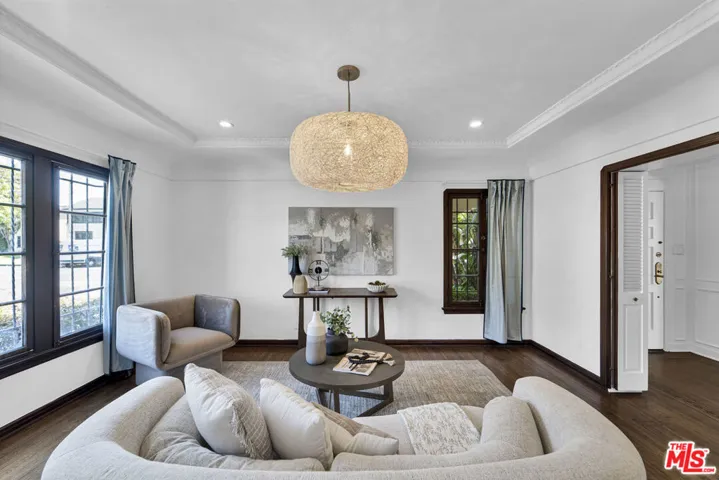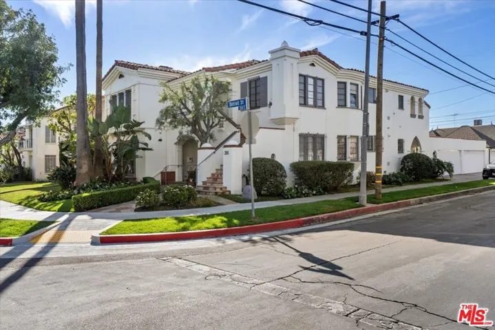 Beautiful HUGE downstairs unit in a gorgeous Spanish Colonial duplex on a corner lot. This is a very rare unit due to the large 2,590 square feet of the unit and the abundant features. 3 bedrooms, 3.5 bathrooms. EACH bedroom has their own en-suite bathroom. A half bathroom as well for guests. Step down living room, Formal Dining room, breakfast area AND a den or family room as well! This is a perfect family home or a perfect entertaining home. Private Patio & back yard space. Private garage includes EV charger & building provided solar panels greatly reduces the electricity bill for the tenant at owners expense. Perfectly situated location – walk to the Grove and about a 2 minute walk to Trader Joe’s to mention a few. This trophy property duplex home has beautiful curb appeal and is in a lovely Historic Preservation zone, guaranteeing the area’s charm and character. Property is currently vacant and move in ready. (Note: Photos show current vacancy and also previous staged photos).