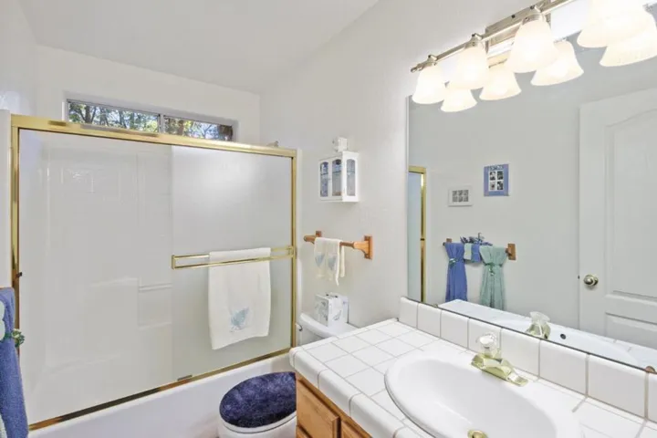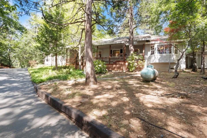 Escape to the charm of Cedar Ridge with this beautifully cared for single story mountain retreat, where comfort meets the beauty of the Sierra foothills. This property includes TWO PARCELS, the main residence plus an adjacent 0.25 acre lot APN 080-270 023-000 included in the sale, for a total of approximately 0.56 acres, offering added space, privacy, or future potential. The home features 3 bedrooms, 2 bathrooms plus a urinal in the garage, and 1,780 sqft of living space. Inside, enjoy vaulted ceilings and five skylights that fill the home with natural light. The open layout allows the kitchen to overlook the living room, ideal for everyday living and entertaining. Large windows capture peaceful views of surrounding greenery. Step outside to a private deck wired for a jacuzzi, perfect for relaxing evenings. The primary suite offers a cedar lined walk in closet and dual sinks. An attached two car garage adds convenience. Enjoy a short walk to a nearby water trail and exclusive private access to Dogwood Lake. Whether as a full time residence or weekend getaway, this single level home with an included adjacent parcel offers a rare opportunity to enjoy mountain living with extra land.