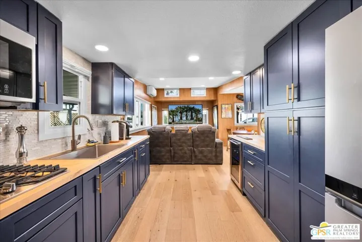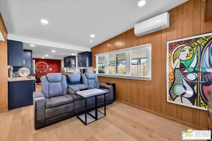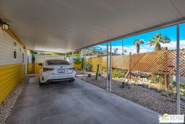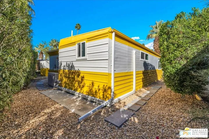 Welcome to the Sunshine House the home you’ve been waiting to call home. This is truly a special property. A completely remodeled manufactured home located in the desirable south end of Palm Springs, within Safari Park, a welcoming 55+ pet-friendly community. This 2-bedroom, 2-bath residence with an ensuite primary bedroom also includes a third room currently used as an office, offering flexibility as a den or potential third bedroom for visiting guests.The home features an open floor plan with white oak engineered hardwood flooring throughout, new plumbing, an upgraded electrical panel, a tankless water heater, all new drywall and paneling, and a three-zone Mitsubishi mini-split HVAC system. Additional upgrades include dual-pane windows and a sliding glass door. All windows and doors are fitted with honeycomb blinds. Custom closets, updated landscaping with lighting and a newly installed irrigation system, two storage sheds, and covered parking for two cars complete the property. The roof carries approximately eight years remaining on its warranty, offering added peace of mind.Safari Park offers an active lifestyle with a clubhouse featuring a kitchen, card room, and library. Residents enjoy social amenities including a pool and spa, shuffleboard, a billiard/rec room, and scenic mountain viewsall within a friendly, well-maintained community.