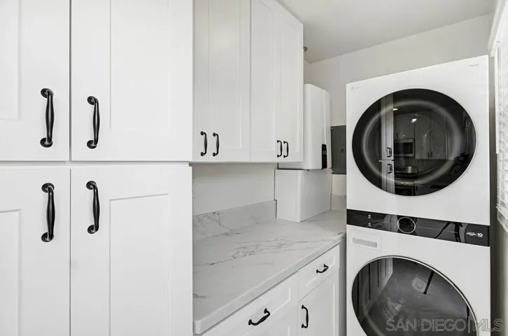 GORGEOUS brand new remodel of this adorable beach cottage on a quiet street in North PB. Brand new kitchen including: flooring, cabinets, quartz countertops, stainless appliances and overflow mudroom with pantry storage and stackable washer/dryer. Charming narrow plank hardwood has been refinished beautifully, brand new dual paned windows throughout, all new electrical fixtures/outlets/switch plates, full paint and gorgeous new landscaping in the front and back yards which are both private. One car garage included and water & landscaper is paid by owner. Enjoy the convenience of being blocks to Kate Sessions Park/Elementary, shopping, Vons/Trader Joe’s and a short distance to the beach and bay!