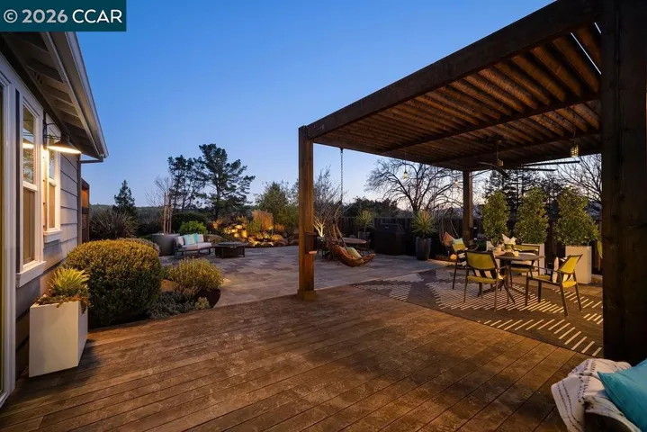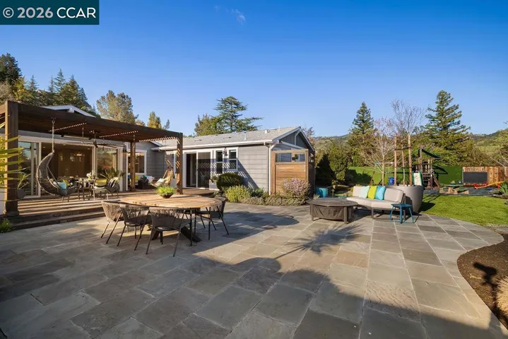 OPEN 3/7 & 3/8, 1PM-4PM! Must-see single-story home in one of Danville’s most sought-after neighborhoods, offering exceptional views, privacy, and convenient access to top-rated schools, parks, and everyday amenities. A 10’6” entry ceiling creates an immediate sense of scale and light. Remodeled in 2019, the home features 4 bedrooms, 3 full bathrooms, and a separate powder room for guests. The open-concept kitchen and great room are designed for both entertaining and everyday living. Refined finishes include maple cabinetry, hickory hardwood floors, and Calcutta Trento quartz slab countertops throughout. Expansive 16’ California doors create seamless indoor-outdoor living. Set on a flat 14,400 sq ft lot with no rear neighbors, the thoughtfully designed backyard includes a tranquil running water feature, mature landscaping, and a peaceful, private setting. Additional highlights include a dual HVAC heat pump system and a whole-home generator, adding comfort, efficiency, and peace of mind.