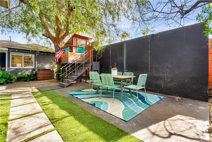 The backyard is a dream for both kids and adults, highlighted by a beautiful Chinese elm with a treehouse that provides year-round shade, along with mature fig and persimmon trees.