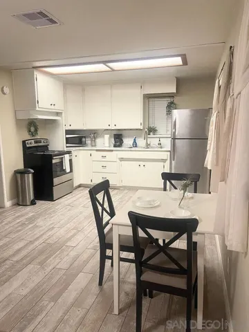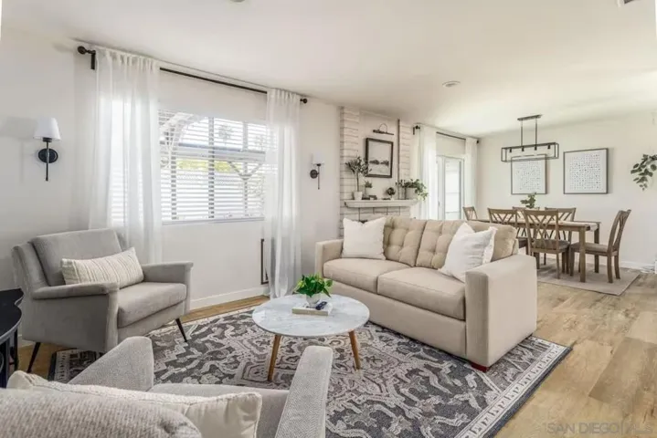 Beautiful single-story home with paid-off solar and a fully equipped attached PERMITTED ADU! The main house offers 3 bedrooms and 2 bathrooms with an open, inviting floor plan and tasteful upgrades throughout. The kitchen features granite countertops, stainless steel appliances, a professional-grade vent hood, bar-height counter, and plenty of natural light. Hardwood and laminate flooring extend throughout, complemented by skylights and recessed lighting for a bright interior. The ADU includes 1 bedroom, 1 bath, a full kitchen, laundry, and its own gated entrance, making it perfect for guests, multigenerational living, or added rental income. Both units are currently active short-term rentals with solid booking histories and excellent reviews. The permitted covered patio extends the roofline, creating a perfect year-round entertaining space. The backyard features turf and pavers with separate fenced yards for each unit and no neighbors to the rear for added privacy. Additional highlights include air conditioning in both units, a 2-car garage with direct kitchen access, a fully fenced lot with vinyl and black fencing, and no HOA or Mello Roos. Ideally located just off the 805 at Balboa, within 10 miles of five Level 1 trauma centers, 5.5 miles to Pacific Beach and Mission Bay, 3 miles to SeaWorld, 5 miles to the airport, and 2 miles to USD and Mesa College. Bright, clean, upgraded, and move-in ready—this home offers flexibility, comfort, and unbeatable convenience in the heart of San Diego.