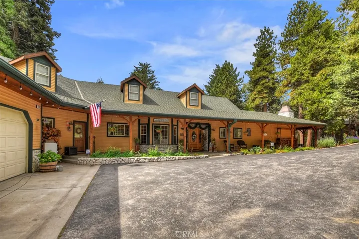 Privately Gated! All One Level Ranch Style Showplace! Situated on approximately 2.31 Acres! Easy Access 4 Car Garage! Deep Well Water irrigation system! Waterfall and Pond! Family Picnic Plateau with outdoor kitchen, Firepit and Custom Smoker. If you are an RV Lover, you have found the right place!! Prior Sellers thought of everything to accommodate their RV. The Family Lodge has 4 Bedrooms, 3 Bathrooms, a Formal Dining Room will seat 10 Comfortably. The Grand Scale Kitchen with Chefs Dream Island + Top Appliances with separate Craft Room! A delightful conversation Sunroom! Whole House Music/Speaker System inside and out. Grand Scale Trex Deck. A covered Porch for Lazy Afternoons. Central Heating and Air Conditioning. Solar Panels! Large Build Up Storage Space. Fruit Trees and Berry Bushes! Landscaped to compliment the forested setting. Giant Trees! Buildable expansion Space and Zoned for Horses! Seller has installed custom concrete driveway which includes multi vehicle parking. Lush Green Near 120 Acred Forest Service Land. Magnificent views of the property from all points. Not another property like this one. Just minutes to Lake Gregory and Shopping. Located in an undiscovered area of Twin Peaks adjacent to Lake Arrowhead. WOW!!