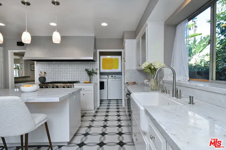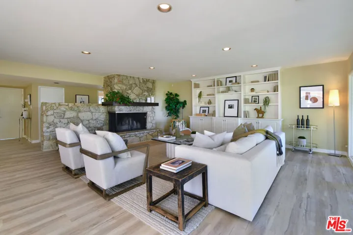 Gated and set back from the street, this single-story mid-century home offers a well-designed floor plan with open living spaces and walls of glass that frame the surrounding views. A welcoming garden entry leads to an expansive living room with a natural stone fireplace, built-in bookcases, and direct access to the formal dining room and bar, creating a comfortable flow for everyday living and entertaining. The updated center-island kitchen includes a breakfast area, Viking oven and range, generous storage, and a pantry. The spacious primary suite features a dressing area and an en-suite bath. Private backyard with a lounging pool/spa, covered patio, and deck, surrounded by mature landscaping and trees. Additional highlights include an indoor laundry room, a two-car detached garage with potential for an ADU, and an oversized driveway for off-street parking. Great neighborhood near the top of Sherman Oaks and close to Mulholland Drive, the home has easy access to Beverly Hills, Ventura Blvd. and the Westside.