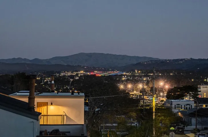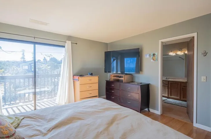 Elegant 3 bedroom, 2.5 bath residence offering over 2,200 square feet of thoughtfully designed living space, exclusive of the basement and two-car garage. The upper level features a light-filled kitchen, dining area, and living room, along with a spacious primary suite with full bath. Sweeping ocean and Monterey Airport runway views can be enjoyed from the kitchen, dining room, living room, and adjoining deck creating an exceptional setting for both daily living and entertaining. A convenient laundry and pantry area, along with a half bath, complete the top floor. The lower level includes two additional bedrooms, a full bath, a generous family room, and a second deck offering tranquil ocean views. Beautiful oak hardwood floors run throughout the home, including the stairwell and banister, adding warmth and timeless character. The charming front yard is enclosed by a classic Carmel stone wall, providing an inviting seating area, while the backyard features a small fenced in area with shed for added storage. Ideally located just a short walk from downtown Monterey, this exceptional home combines breathtaking views, functional design, and an unbeatable location rare opportunity to enjoy the very best of Monterey living.