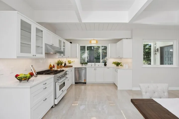 Only 0.3miles/1minute from Hwy 17/Summit! Single story 3 bed/2 bath mid century home plus 1 bed/1bath apartment on approx 1.4ac, mostly flat! Huge open kitchen features new tile flooring, new cabinetry, quartz counter tops, new stainless appliances, new light fixtures and spacious dining and/or family room area with large skylight. Separate living room with new French doors, woodburning fireplace with stone hearth, and wood plank ceilings. Two full bathrooms, both updated. The 1 bedroom 1 bathroom apartment can be accessed through the garage, or separate exterior entry from side patio. Newer unit, features open floorplan, with lots of natural light, granite counters/island. Previously rented for $3000/month. Detached art studio/office with large picture window. The land is sunny and ALL usable, the possibilities are almost endless. Long private driveway, existing horse stall, fenced garden, expansive level lawn. The lower area is completely level, formerly the site of a riding arena – ample space for equestrian use, pool, sport court, parking for oversized vehicles, boat/RV. New 24×36 concrete pad ready for your workshop, barn or additional garage. Quiet setting, set back from Summit Rd, cute school bus stop at the end of the shared driveway!
