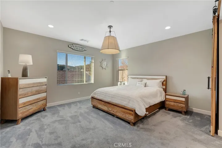 OVER $200,000 IN UPGRADES AND A MULTI-GEN SUITE!! Newly built in 2020, this beautiful Audie Murphy Ranch home sets itself apart with stunning upgrades and was one of the original model homes. With 2,881 sqft of living space on a spacious 8,712 sq foot lot, this single-story home has 4 bedrooms, 4 bathrooms and a tandem 3 car garage. Walk inside and you’ll find high ceilings, plenty of lighting and a dream open concept chef’s kitchen with a large island, Quartz countertops, custom cabinetry, and a large walk-in pantry. With a dining room big enough to seat the whole crew, the adjacent living room, multi-gen suite and California room all have built in speakers, which make this home perfect for entertaining. The spacious primary bedroom has a custom sliding barn door to it’s private bathroom, featuring dual sinks, a soaking tub, walk in shower with tile and seat, and an extra-large walk-in closet. Completing this amazing home is its multi-gen suite with separate entrance, cabinets with countertop, sink, mini-refrigerator, a private ¾ bathroom and a second washer and dryer! To add icing on the cake, the owner has added plenty of additional storage throughout the home and the garage, extra solar panels, a solar skylight, whole house fan, permanent holiday lighting, rain gutters, and electric car charging outlet. All of this located inside the incredible Audie Murphy Ranch community with a recreation center, swimming pool, spa, sports courts, hiking trails, and more.