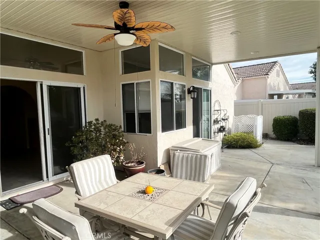 55+ Community. Welcome to 23880 Via Pamilla, a bright and spacious single story home located in the beautiful 55+ Community of The Colony. The home is tucked deep in the gated community offering a peaceful and quiet environment. This 2-bedroom, 2-bath residence features a very large office/den, ideal for working from home or additional living space. The Livingroom and formal dining room feature tall ceilings and abundant natural light which create an open, airy feel throughout. Your eat-in kitchen is thoughtfully laid out for convenient meal prep with plenty of storage. Step through the sliding doors out to the covered patio, complete with fans and lighting—ideal for relaxing or spending time with family and friends.