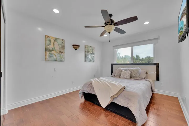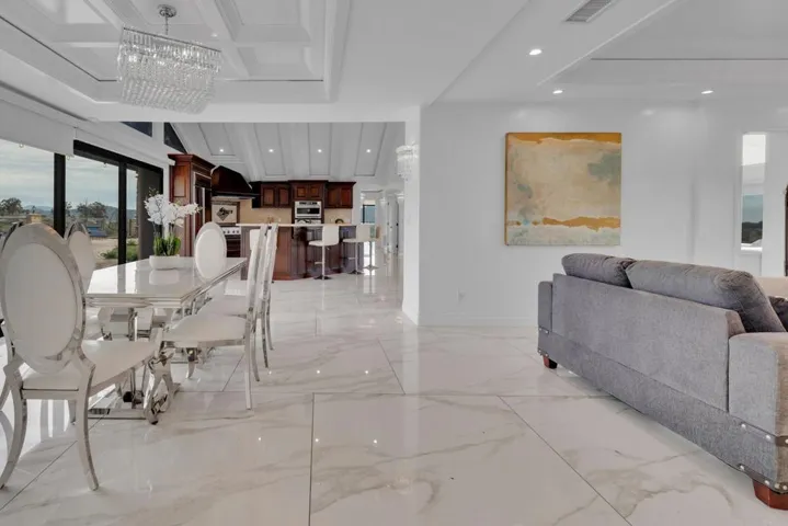 Beautiful 4-bedroom, 3.5-bath single-family home in El Cajon offering stunning panoramic views and a private backyard pool perfect for entertaining. This well-maintained residence features elegant tile flooring throughout, beautifully updated bathrooms, and striking custom architectural ceilings that create an open, dramatic living space filled with natural light. The spacious living room showcases an elegant marble slab fireplace, while the kitchen offers rich cabinetry, generous counter space, and impressive ceiling detail that enhances the home’s upscale feel. Enjoy seamless indoor-outdoor living with scenic surroundings, comfortable gathering areas, and a backyard designed for relaxation and entertaining with paid off solar.