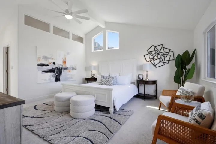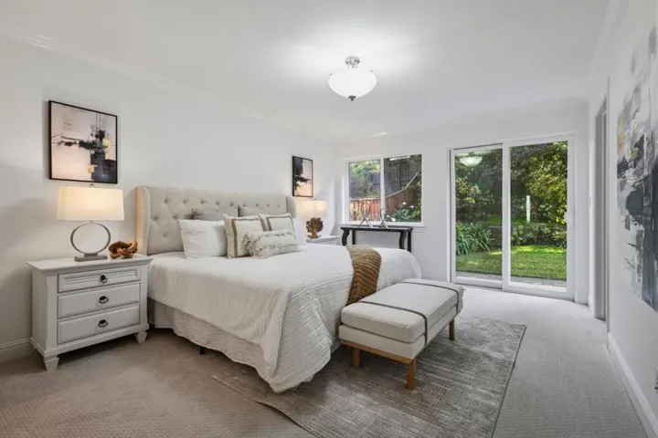 Rarely does a Belmont home combine sweeping Bay and hillside views with four spacious bedrooms, each with its own private en-suite bathroom. Spanning approximately 2,800 square feet, this thoughtfully designed residence offers comfort, privacy, and exceptional space for both everyday living and effortless entertaining. At the center of the home is a beautifully appointed kitchen featuring a gas cooktop, solid-surface countertops, and a double oven. A separate dining room is ideal for hosting dinners and gatherings, while the family room opens seamlessly to the kitchen and backyard. A dedicated home office offers a quiet, private space ideal for remote work or study. Soaring ceilings, skylights, and hand-painted sidelights enhance the homes light-filled, sophisticated aesthetic. Modern comforts include central air conditioning, ceiling fans, energy-efficient double-pane windows, and a retractable sunshade over the patio. Additional highlights include generous walk-in closets and an indoor laundry area. Every detail reflects timeless elegance and elevated comfort. Ideally situated on a desirable cul-de-sac with top-rated schools and convenient access to local amenities and transportation, this home presents a rare opportunity to enjoy beautifully designed living in Belmont.