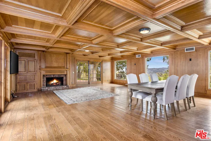 Perched on a secluded promontory in Hidden Hills, this private hilltop estate offers exceptional privacy and expansive panoramic views. Accessed by a long, tree-lined driveway, the Mediterranean-style residence is filled with natural light and designed for seamless indoor-outdoor living.The home features 5 bedrooms and 3.5 bathrooms, with a well-planned layout ideal for both everyday living and entertaining. A dramatic two-story rotunda entry leads to formal living and dining rooms with multiple French doors opening to outdoor terraces. The chef’s kitchen is equipped with Sub-Zero and Viking appliances, generous island seating, and direct flow to the main living spaces.The family room includes a wet bar, fireplace, coffered ceilings, and custom paneling. Upstairs, the primary suite offers a fireplace, sitting area, spa-style bath, two walk-in closets, and a private balcony with sweeping jetliner views. Two additional en-suite bedrooms complete the upper level.The lower level includes a guest suite and an additional bedroom or office, each with separate entrances, providing flexibility for guests or work-from-home use. The former corral has been converted into a landscaped yard, offering additional outdoor space and potential.Conveniently located, this property combines privacy, views, and accessibility in one of Hidden Hills’ most desirable settings.