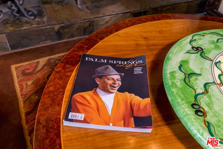 FRANK SINATRA’S DESERT HIDEAWAY-1970: Frank Sinatra’s Villa Maggio, a one-of-a-kind collector’s trophy. Set high above the Coachella Valley, the compound represents the only residence Sinatra was personally instrumental in designing and building for his own use. He chose this incredible mountain retreat after the frenetic days and nights performing in Las Vegas to create a private sanctuary where he could entertain the Rat Pack, visiting royalty, global dignitaries and fellow icons with absolute discretion! Named for the character that earned him an Oscar in From Here to Eternity, the unique estate preserves its original mid-century lodge style and stands as the last intact Sinatra property available for purchase, a piece of American cultural history. Secluded mountain setting: Perched at roughly 4,300 feet, the 7.5acre site enjoys a temperate climate (approximately 15-20 degrees cooler at then the desert below) and unobstructed 360 degree views of mountains, national monuments and city lights. A gated drive ensures privacy, yet Palm Desert’s luxury shopping and dining are only 20 minutes away and Palm Springs International Airport is 26 miles by helicopter. Main residence: The 6,428 square foot main house blends rustic-modern design with locally sourced stone, hardwood floors and high vaulted ceilings. There are 5 bedrooms and 5 baths, 7 fireplaces and 2 kitchens. A massive deck overlooks the desert floor while multiple fireplaces and exposed beams create an intimate lodge ambience. Guest and pool houses: A 3 suite guest house, each suite offers a private view deck, stone fireplace, kitchenette and bath; there is even a secret passage between 2 bedrooms. The pool house, warmed by a stone fireplace, features two saunas, a kitchenette and a large gathering area where Sinatra and friends gathered are perfect for after tennis cocktails or watch-collector presentations. Resort amenities: Designed for and by the entertainer, the compound includes a resort style pool, lighted tennis court, expansive outdoor spaces, helipad and parking for 24 cars. A large motor court easily accommodates a collector’s garage of classic cars. Extensive terraces and a mountain-view deck create ideal settings for alfresco dining. Sustainable craftsmanship: Wide overhanging eaves provide shade and reduce the ecological footprint, while locally sourced materials ground the estate in its desert surroundings. Renovations have remained faithful to Sinatra’s original vision, maintaining authentic charm while integrating modern comforts. With its provenance, scale and amenities, Villa Maggio appeals to collectors of fine estates, historic properties, watches, aircraft and classic automobiles. Sinatra designed the compound not only to escape the desert heat but to host friends and VIP guests with unmatched privacy, security and luxury. The helipad and 24car motor court speak to aviators and car enthusiasts, while the hillside setting and mid-century architecture attract connoisseurs of Americana. As the last remaining unaltered Frank Sinatra estate, this property represents a unique opportunity to own a living piece of cultural history. Whether acquired as a personal retreat, an addition to a portfolio of collectible assets or as a showcase for an art or automobile collection, Villa Maggio stands alone in significance and appeal. Potential for additional structures to be built on property (Buyer to verify). Private sale or trade inquiries are invited.