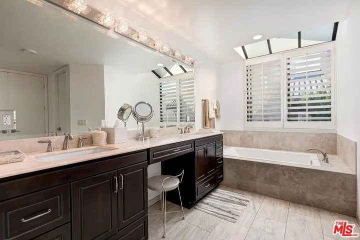 Welcome to 2435 Century Hill, a spacious south facing townhome-style remodeled residence with interior quiet location within the guard-gated Century Hill community in the heart of Century City. The gated entry opens through a large private patio to a generous living room flooded with natural light and a stone fireplace, recessed lighting, and room for a grand piano. The space flows naturally into the formal dining area, where a crystal chandelier hangs above French doors leading out to a private atrium area. Rich hardwood floors run throughout the main level, adding warmth and character. The remodeled kitchen features solid oak cabinetry, quartz countertops and stainless steel appliances. A built-in banquette nook off the kitchen provides a comfortable spot for dining. A separate half bath with pedestal sink and gold toned fixtures sits conveniently on the main level. The generous primary suite with vaulted ceilings, hardwood floors, a stacked stone fireplace, an adjoining office or den area, and sliding glass doors to a private balcony. The ensuite bath includes a glass-enclosed shower, dual vanity with a seated makeup area, walk in closets and a soaking tub. A second bedroom or office with built-in bookshelves and large windows offers flexibility. The home also includes an in-unit laundry room with full-size LG washer and dryer, and a private three car garage. Century Hill’s 18-acre grounds include five swimming pools, tennis courts, a fitness center, and round-the-clock security. With Westfield Century City and Beverly Hills just minutes away, this is a rare chance to have luxury, privacy, and convenience all in one address.