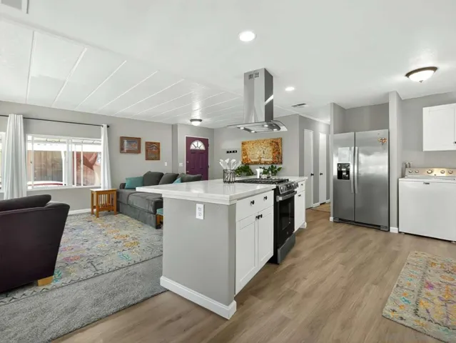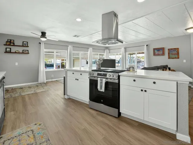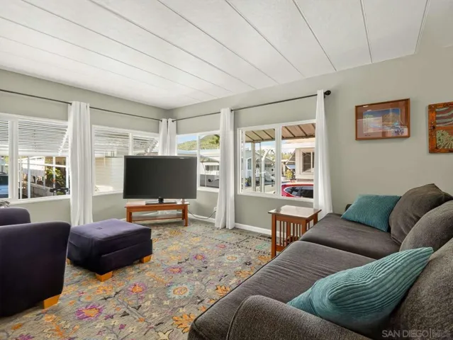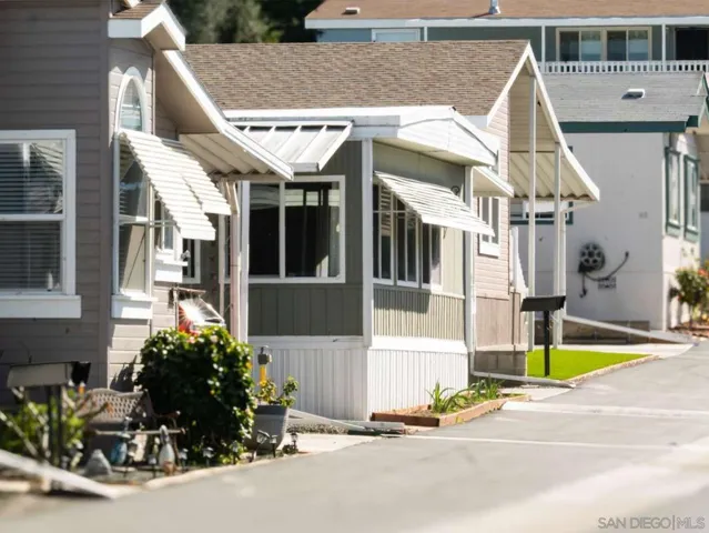 Beautifully remodeled 2 bedroom,1056 sq ft home located in one of East County’s most desirable resident-owned 55+ communities. This well-managed, gated, and impeccably maintained neighborhood includes a dog park, a year-round 89 degree heated pool and spa, and many clubhouse activities. With the lowest refundable buy-in in the area ($6200) and a monthly space rent of $630, this park is one of the most affordable resident-owned parks in San Diego County. In 2025, the home’s roof was resealed, it was painted inside and out, (including texturized interior walls), had all new flooring and carpeting installed, all new shaker kitchen cabinets, a kitchen island and quartz countertops installed, a new front bath remodel, and both outside stairs re-carpeted. All appliances convey. All windows are vinyl double-paned. There has been extra roof and wall insulation put in (per previous listing), all electrical outlets have been pigtailed with copper, and the plumbing has all been replaced with PEX. The A/C and hot water heater are both only 7 years old (2019), and the hot water heater, A/C, and heater were all checked by San Diego’s main utility company approx. 6 months ago. The yard is low maintenance and graveled and had French drains installed, the driveway has been widened and fits 2-3 cars with a small shed included, and the home is still under a termite warranty until February 2027. In addition, this home has no property taxes! It’s on registration–approximately $70 a year! Come see this beautifully remodeled home 10 minutes from shopping, and only 30 minutes to the coast!