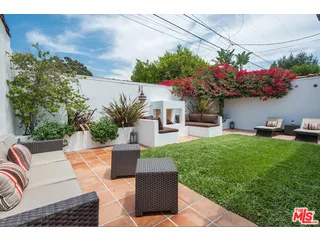Charming designer-done Spanish featuring 3 bedrooms and 2 bathrooms in prime West Hollywood West location. A spacious living room welcomes you with wood-beamed ceilings, a custom fireplace, Moroccan light fixtures and rich dark hardwood floors that add warmth and character throughout. The gourmet open kitchen is outfitted with stainless steel appliances and generous counter space, ideal for both everyday living and entertaining. Both bathrooms showcase Moroccan tile work and custom cabinetry, blending style with functionality. French doors throughout the home create seamless indoor-outdoor flow and invite in natural light, giving the space a calm, almost zen-like energy. The private backyard is perfect for gatherings, complete with an outdoor fireplace and built-in seating surrounded by mature greenery and beautiful trees for added privacy. Additional features include a gated driveway, 2-car garage and in-home laundry. Located just moments from some of the best shops and restaurants in Los Angeles and West Hollywood. A special opportunity not to be missed.