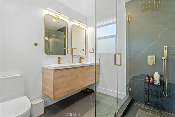 Wide plank wood flooring extends across the main living areas, complementing the bright palette and refined finishes. The bathrooms have been fully remodeled with designer tile, modern fixtures, and spa inspired details. Each bedroom is generously sized, offering comfort, privacy, and flexibility for a variety of lifestyles.