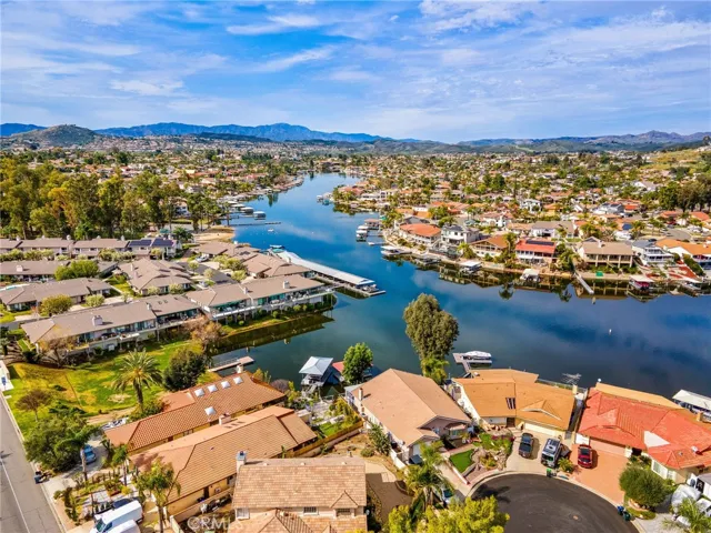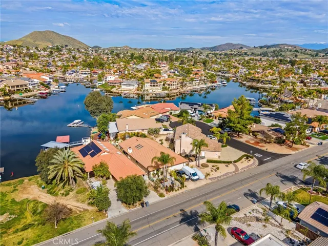 Welcome to this exceptional waterfront home at 23572 Continental Drive in Canyon Lake, offering 3 bedrooms, 2 bathrooms, and 1,831 sq ft of well-designed single-story living with zero interior steps. The living room is highlighted by vaulted ceilings and three skylights, creating a bright and airy atmosphere, complemented by solid core doors throughout and a cozy fireplace. The open kitchen has lake viewss features modified cabinetry designed to accommodate wheelchair access (with the option to add cabinetry back if desired), a prep sink, and a center island complete with a mini refrigerator. The primary suite is spacious, offering a good sized walk-in closet, dual sinks in the bathroom and a step in shower. The secondary bathroom also has dual sinks and a tub/shower combo. Step outside to a private, resort-style backyard showcasing tropical landscaping, fruit trees, excellent privacy, and Ruschia “Dwarf Carpet of the Stars” ground cover that stays green year-round with no mowing required, all supported by drip irrigation in both the front and backyard for low-maintenance care. Enjoy the new hot tub with mounted TV, an upper terrace with views of Canyon Lake’s fireworks, and front-row seats to the annual boat parade directly from your covered dock with boat lift. The gently sloped pathway to the dock offers an approximate 2% grade and includes a lift for seamless water access. Additional highlights include plans for a future casita or the option to create a stylish firepit seating area, along with walking distance to Indian Beach, making this a rare opportunity to own a thoughtfully designed waterfront home that blends comfort, accessibility, and unforgettable lake views. Canyon Lake is a 24 hour guard gated community with a private 525 acre lake, premiere wakeboarding and waterskiing, 18 hole SCGA rated golf course, Lakefront pool and clubhouse, Lakefront RV park, Equestrian center, tennis, basketball & pickleball courts, baseball fields, 4 beaches, 9 parks, an amphitheater, docks, a bicycle pump track, Senior Center, over 40 clubs to join and so much more!