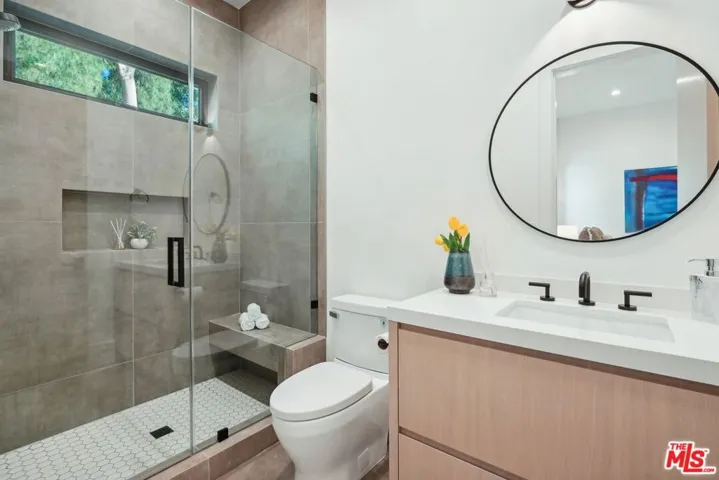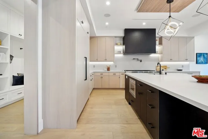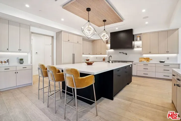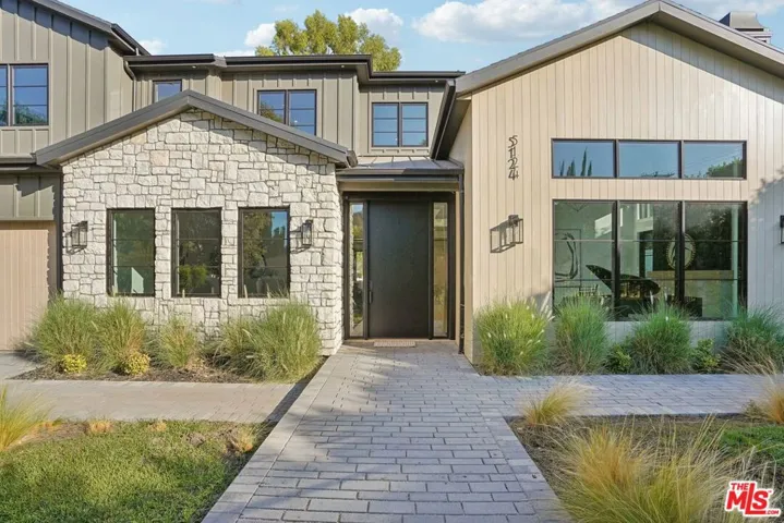 Discover the pinnacle of luxury in this brand-new gated estate located South of the Boulevard in the heart of Tarzana, CA. Built with the finest materials and high-end designer finishes, this secluded residence offers an exceptional living experience combined with the convenience of all the Valley has to offer. On the first floor, step through the oversized front door into an open-concept layout flooded with natural light from expansive windows and adorned with soaring ceilings. The living room, featuring a fireplace and two-story vaulted ceilings with exposed wood beams, exudes elegance. The formal dining room, perfect for hosting dinner parties and gatherings, is highlighted by a stunning wood slat ceiling. The gourmet kitchen is a chef’s delight, boasting a massive center island with a breakfast counter, top-of-the-line appliances, a walk-in pantry, and a cozy breakfast nook. Adjacent to the kitchen, the family room offers a beautiful stone fireplace, built-in cabinetry, coffered ceilings, and pocket glass doors that transition effortlessly to outdoor living. Also on the main level, find a downstairs ensuite bedroom, an office with built-ins and a French door leading outside, a laundry room, a mudroom, a movie theater, and a dry bar with a wine fridge.