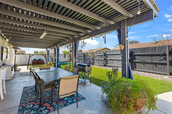 YOU FOUND IT! FULLY PAID-OFF solar panels on this beautifully maintained and inviting residence nestled in the heart of Moreno Valley. This spacious home offers a perfect blend of comfort and style, boasting a thoughtful layout designed for modern living. With four generous bedrooms and two full bathrooms, the residence provides ample space for relaxation and privacy. The open and functional floor plan is enhanced by vaulted ceilings, two skylights, and an abundance of natural light, creating a bright and airy atmosphere from the moment you step through the front door. The heart of the home is the chef-inspired kitchen, which has been tastefully updated with modern cabinetry and high-quality appliances, making it a joy to prepare meals and entertain guests. The kitchen flows seamlessly into the open-concept living and dining areas, providing a cohesive space for everyday living. Elegant flooring and contemporary fixtures throughout the home elevate the overall aesthetic. The primary suite serves as a true retreat, featuring a private en-suite bathroom with an upgraded shower and modern glass enclosure, along with generous closet space. Outside, the property showcases exceptional curb appeal with a beautifully designed water-wise front yard. The backyard is equally impressive, featuring low-maintenance artificial turf, an expansive covered patio ideal for entertaining, and mature fruit trees that provide both beauty and function. An attached two-car garage provides convenience and additional storage options. The community surrounding Meadbury Dr is known for its peaceful ambiance and well-kept streets, offering a sense of tranquility while remaining close to the vibrant energy of the city. The location is ideal for those seeking convenience and accessibility. Situated just minutes from major highways, including the 60 and 215 freeways, this home offers a streamlined commute to surrounding employment hubs and is within easy reach of March Air Reserve Base. For your shopping and dining needs, the Moreno Valley Mall and TownGate Promenade are a short drive away. Families will also appreciate the proximity to local parks and schools, providing plenty of opportunities for recreation. This exceptional opportunity combines a prime location with comfort, efficiency, and inviting outdoor living. We invite you to experience the charm of this property firsthand.