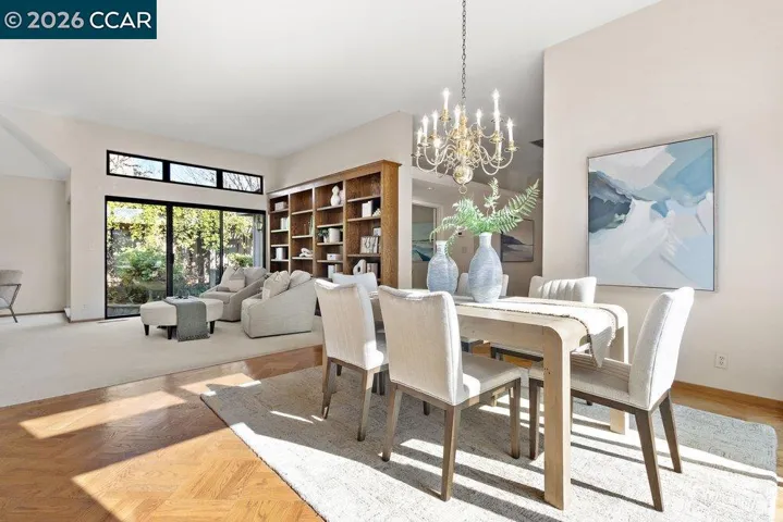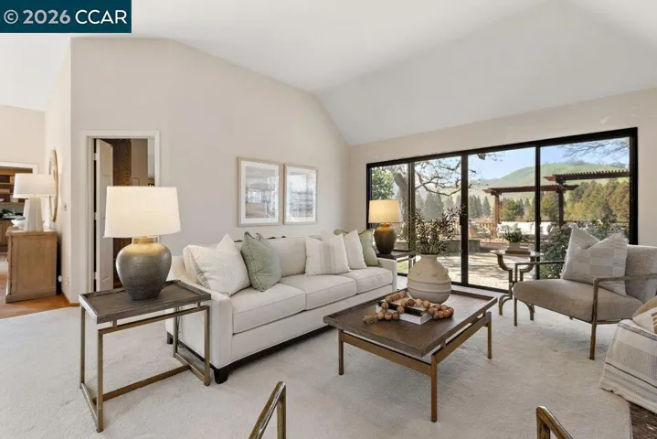 Bryan Terrace w/Views – all living spaces are drenched in natural light and showcase hdwd floors, vaulted ceilings, recessed lighting, carpeted bdrms, and plantation shutters. The spacious living room, dining area and addl space for library seating, or music niche adjacent to a wall of built-ins are featured. A gas fireplace anchors the living room area. Each unique space features a sliding glass door to outdoor gardens. The chef’s kitchen features granite tile counters, an island and upgrade appliances. The kitchen is open to a casual dining nook and spacious family room that features a fireplace with a brick surround with a slider to the backyard. 3 bdrms and 2.5 bathrooms include a primary suite behind a double door entry with a vaulted ceiling and a dual-side fireplace it shares with the en suite. 2 addl bdrms include one with a front-facing window and en suite with a tub/shower combination, and a bdrm with double door entry that would make an ideal office. The ultra-private backyard offers sunset views, arbors, and multiple venues to entertain. Community pool and tennis/pickle ball court featured. Open house Feb 14-15; 1-4pm