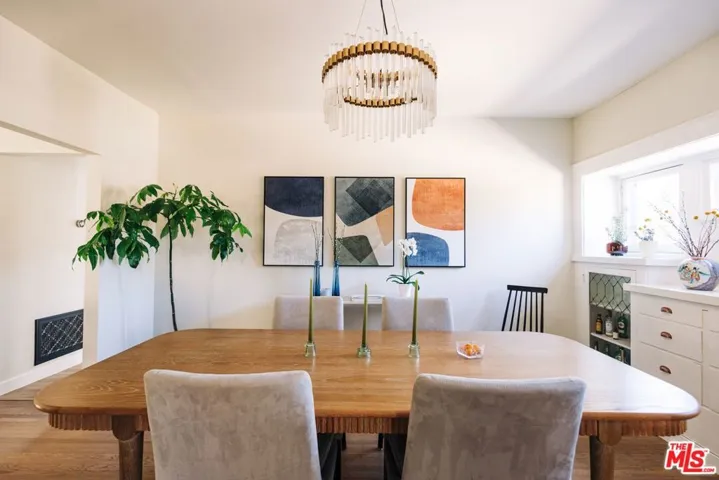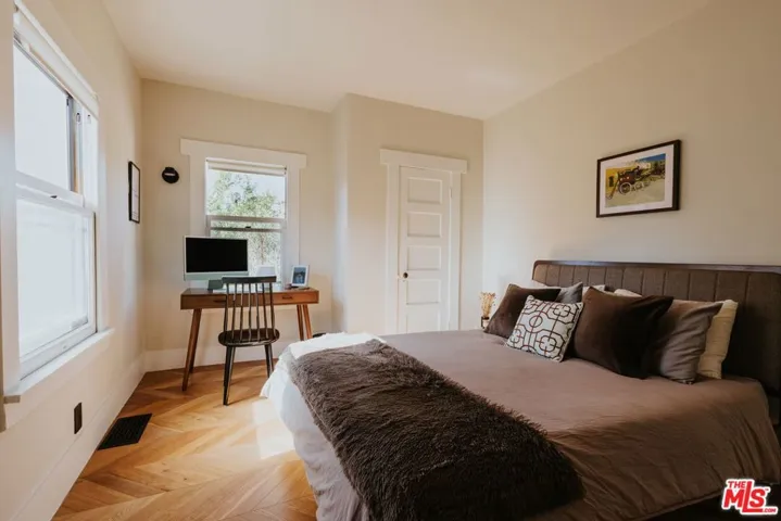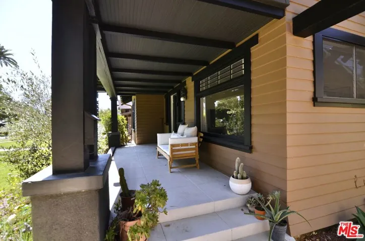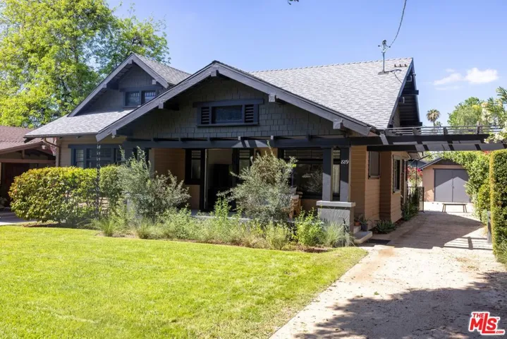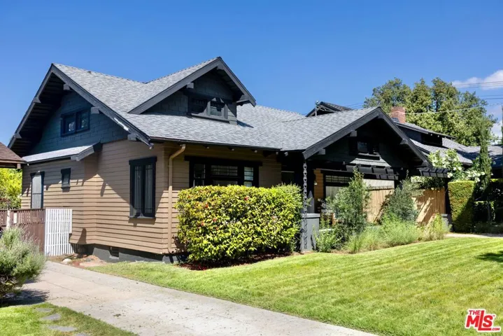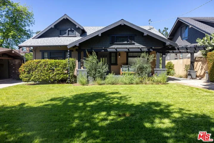Historic 1907 Bungalow Heaven handsome Craftsman awaits its new steward. Built and designed by prominent developer Henry C. Deming, this updated 2-bedroom, 1-bathroom home offers 1,160 sq ft, while sited on a generous 7,606 sq ft lot. The home is anchored by its strong horizontal proportions and cross-gabled roofline. Wrapped in clapboard on the lower story with shingles hugging the gable ends, a front-gabled porch occupies the north two-thirds of the facade. Broad windows with rows of small lights across the top and extended lintels provide additional horizontal emphasis; a hallmark of classic Craftsman design. A wooden pergola extends north from the house, spanning the driveway. From the front porch, step through the home’s entrance, flanked by half-height sidelights, and into a light-filled living room featuring restored hardwood floors and a decorative fireplace. The spacious formal dining room showcases an original built-in buffet with leaded glass cabinet doors, while a door to the backyard enhances indoor/outdoor entertaining. The remodeled kitchen includes a breakfast area and offers ample cabinetry for cooking and storage. A coffee bar provides additional counter space for prep needs. The vintage Wedgewood gas stove nods to the home’s period, while a newer refrigerator and dishwasher deliver modern convenience. Just outside the kitchen is a side-by-side covered laundry area with washer and dryer. The sunlit, modest-sized bedrooms, share a light-filled Jack-and-Jill bathroom featuring beautiful new ceramic tile, sink, and shower. An original large built-in cabinet provides generous linen storage and shelving. The front yard offers a large grassy area, while the backyard provides room for an ADU. Take advantage of the backyard and escape to the outdoors with views of the San Gabriel Mountains. Cool off on those warm summer days with the outdoor shower. Enjoy alfresco dining utilizing the built-in Argentine barbecue. Inspired by the neighborhood’s past, the property includes a mini orchard with kumquat, orange, lemon, fig, olive and mandarin trees. The driveway and backyard feature decomposed granite, providing a more sustainable landscape solution. The California basement, with exterior access provides additional storage and houses the new water heater. The long driveway with a one-car garage, offers ample off-street parking, along with access to an electric vehicle charger. Located just blocks away from the neighborhood’s McDonald Park. Experience the strong sense of community and enjoy nearby favorites such as Millie’s Caf, Roma Market, The Italian Deli Co., Bacchus Kitchen + Wine Bar, Lavender & Honey Espresso Bar, Seed Bakery, Madeline Garden Bistro & Venue, Bistro 45, Union Restaurant, Old Sassoon Bakery, Fika Fika Coffee, Bloomfield Creamery, and Erewhon. Come see why this special home is listed on the National Register of Historic Places.