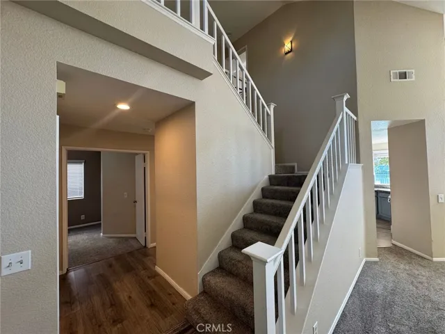 “Lake front” property with a private Pool & Spa. Live on the edge…Entertain ‘galore’ in this great backyard, gas Vermont Castings BBQ, covered patio with ceiling fan and lites. Separate engineered balcony structure off primary bedroom overlooking the lake and mountains. New deck coating so everything is sharp. Take a dip in the pool and enjoy the peaceful setting to unwind. Utterly unique to find the lake and pool combo. Separate gate in yard leading down to the lake. This home is a Gem. 4th bedroom is currently used as an office on the main floor. All baths are full baths, downstairs bath has matching granite to the kitchen. Kitchen has stainless appliances with natural gas, granite, and a cozy sitting area. Separate family room with gas fireplace to the kitchen, spacious separate living room and dining area. New interior paint and carpet. All lighting has been upgraded to LED. New dining room chandelier. Inside laundry room with cabinets. Garage has tons of storage cabinets that stay. Bedrooms are all spacious, with the primary bedroom overlooking the lake and sunrises. Ceiling fans through out, neutral colors, and updated. Walking distance to schools, parks, and the beach club. Take a relaxing walk around the 2 mile lake at Menifee Lakes Community. Add some fishing to your TO DO list! Take a walk around the lake.