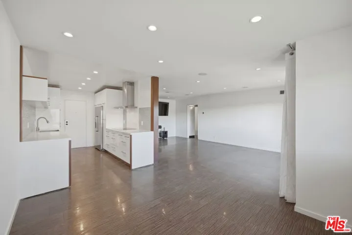 Welcome to modern living at The Bristol, ideally located in the heart of West Hollywood just north of Santa Monica Boulevard and east of La Cienega. This top-floor residence offers approximately 1,379 square feet of thoughtfully designed living space with sweeping east-facing views and abundant natural light throughout. The spacious, bright, and airy living room opens to a private balcony, perfect for morning coffee, evening relaxation, or stargazing. An open-concept layout seamlessly connects the living room, dining area, and kitchen creating an inviting space for both everyday living and entertaining. The updated kitchen features stainless steel appliances, quartz countertops, and ample cabinetry, offering both style and functionality. A dedicated dining area is adjacent to the kitchen, enhanced by large windows that fill the space with natural light. Tile flooring in living room, dining area, kitchen and bathrooms, coupled with hardwood flooring in both bedrooms and hallway adds to this unit’s clean, modern aesthetic. The spacious primary suite provides an expansive eastern view, a roomy walk-in closet, and an updated en-suite bath with a glass-enclosed shower. Both bathrooms have been tastefully updated with contemporary finishes, including skylights, and a double vanity + glass-enclosed shower / soaking tub in the second bath. The second bedroom is versatile and ideal as a guest room, home office, or nursery, and also faces east with a view. Dining area and bedroom windows have plantation shutters. An additional highlight offers the convenience of an HOA-approved washer / dryer combo in the unit that is located in a laundry room with additional storage. There are two assigned side-by-side parking spaces in the gated garage along with a private storage cabinet. Residents of The Bristol enjoy access to a pool and expansive outdoor common area with tables and seating, perfect for relaxing or entertaining. Monthly HOA dues of $699. includes water, property maintenance and structural earthquake insurance. Ideally situated near some of West Hollywood’s most popular destinations, The Bristol is just moments from Sunset Boulevard, Barry’s and Equinox gyms, Gelson’s, Trader Joe’s, Landmark Theatres, Marix Cafe, La Boheme, CVS, Wells Fargo, Bank of America, and soon-to-open Laurel Supply and Erewhon markets, placing the best of city living right at your doorstep.