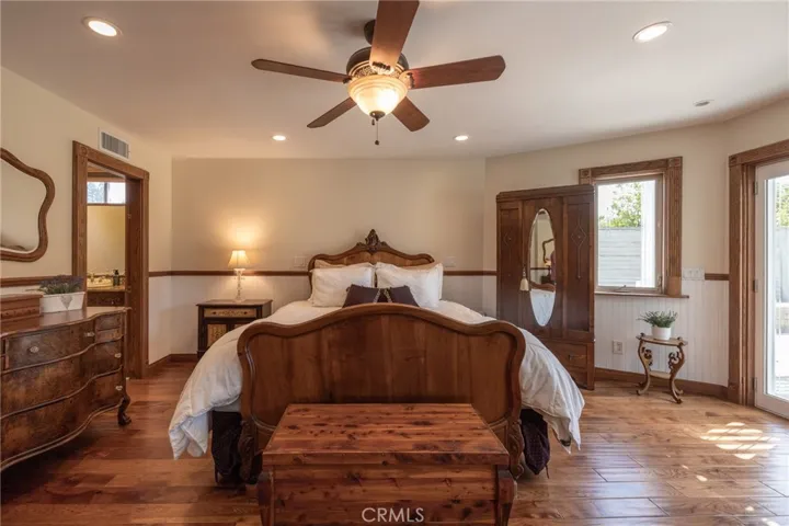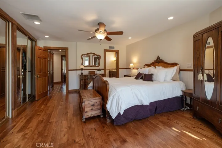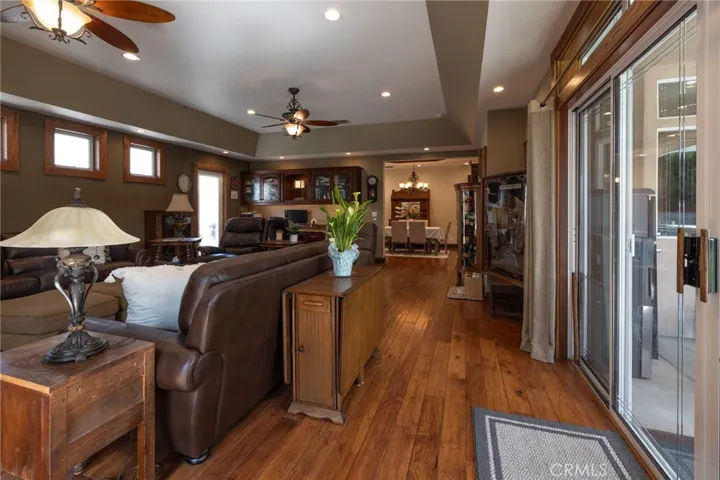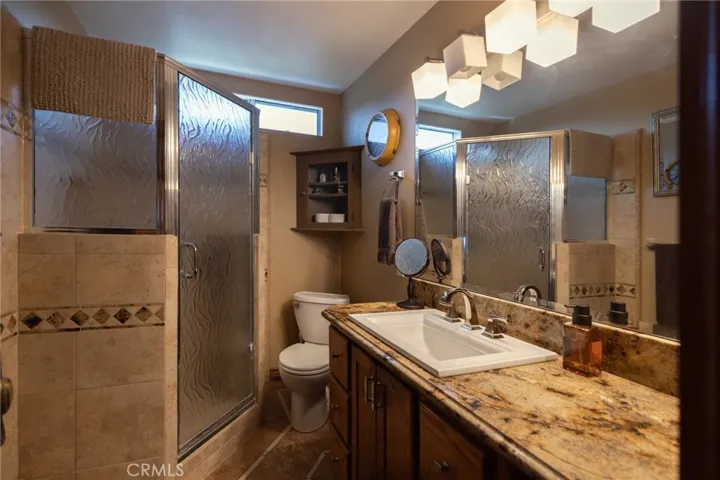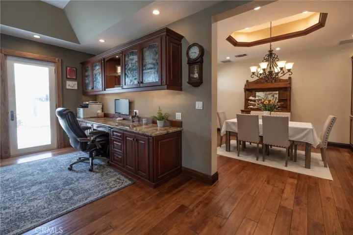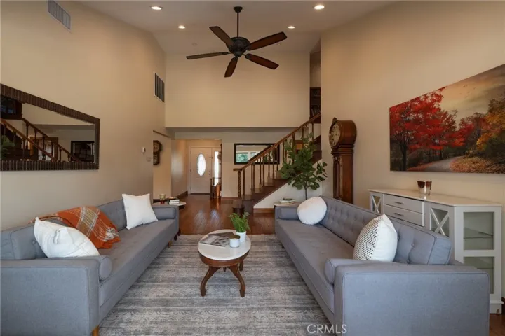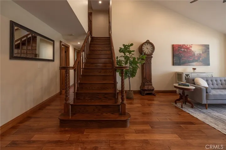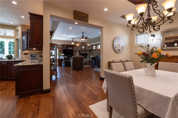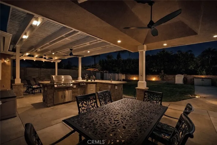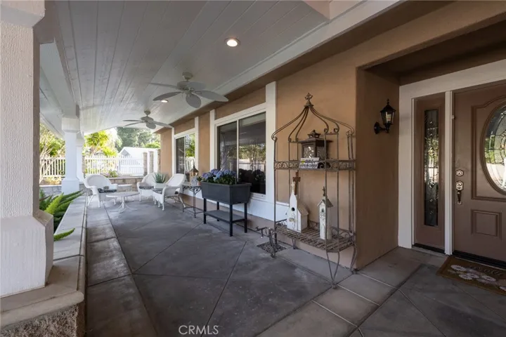 Multigenerational living in Yorba Linda! The main house lives like a single level with the primary ensuite & two bedrooms/one bath on the first floor and two beds/one bath upstairs. The detached ADU offers potential for income, and the RV driveway offers separate access as well as electricity and a dump station. This 5 bed, 3 bath home with a 2 bed 1 bath ADU and RV parking on an oversized lot with solar panels offers room for the whole family. For those warm Summer nights, the extended roof patio spans the front of the home in rain or shine, and your front lawn will always look mowed with the manicured artificial turf. The RV gate is 17 ft wide and the driveway is over 60ft long and 18ft wide from eves to wall along side the 3 car garage. Inside, views to the backyard, vaulted ceilings, and a warm wood floor greet you. The classic kitchen is beautifully appointed with top-of-the-line appliances including a Sub Zero refrigerator, Dacor 5 burner stove, Miele double ovens and warming drawer, Kitchenaide stainless dishwasher and fridge with panel doors matching the cherry cabinets with beading. A Farmhouse sink and solid maple pullout drawers including a spice rack, and two lazy Susans with many soft close drawers make this kitchen as functional as it is beautiful. The spacious island showcases Splendor granite, a vegetable sink and seating for three. The ample cabinetry also offers a coffee cabinet and Splendor backsplash diamond cut outs. An abundance of lighting tops it off. The dining area accommodates a 12 ft table and warm fireplace. Come hang out in the very spacious and warm great room with stone covered fireplace and raised hearth. Windows and glass doors to bring in lots of light and a built in desk with cabinets span one whole wall. Step out to the patio where you’ll find an outdoor kitchen with concrete counters, a Blaze BBQ, 2 burner stove, sink and garbage disposal. Green grass, avocado trees, and the ADU are surrounded by Slump Stone and Concrete walls. The 920 foot ADU hosts 2 bedrooms and 1 bath with kitchen overlooking a very spacious gathering area, lots of cabinetry and its own laundry and an outside gated artificial turf yard. Step back into the primary bedroom doors from the patio in the main house to find a spacious primary bedroom with a wall of closets, walk in shower in the primary bath and 2 more first level bedrooms and the hall bath hosts the tub. Upstairs -two large bedrooms and a full bath. Shopping, theatre and great schools!