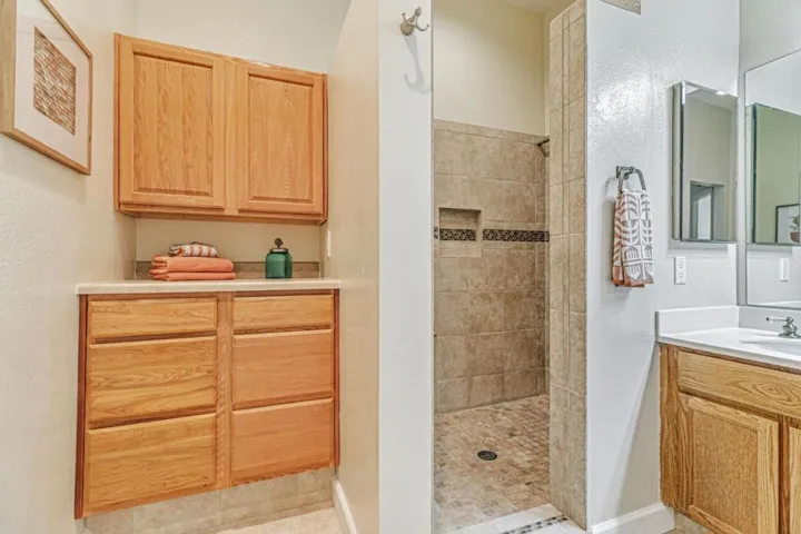 Looking for a spacious home for entertaining or still work from home? *** A great price for a unique style home with 1751sf end unit in the Village Highlands of The Villages Golf & Country Club, a 55+ Gated, active Senior community located in the Evergreen Hills of Silicon Valley. *** This light and bright home features: Primary Bedroom ensuite with walk in shower and closet *** A private Guest bedroom ensuite *** A large den for an office, library or media room. *** Convenient half bath *** Dining room for large entertaining meals plus eat in kitchen nook *** Kitchen with lots of cabinets and window over sink *** Garage has room for 2 cars and/or golf cart plus storage and utility sink. *** High ceilings with lots of natural light enhance the open concept of this freshly painted and carpeted single level home waiting for you to move in and add your decorator touch.*** The Villages offers multiple amenities including: 9 and 18 hole Golf course (No membership), Tennis, Bocce and Pickleball courts, 4 Pools with Spas and showers, Billiards room and miles of Hiking Trails on the beautiful foothills. ***** Dining events in our ballroom with golf course views, Formal Dining plus Casual Dining in the Bistro with patio service ***** Come preview today.- you deserve Country Club Living.