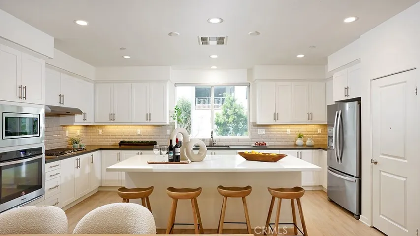 Situated on a premium corner lot within the highly sought-after Great Park community of Irvine, this beautifully appointed residence offers the perfect blend of modern design, functionality, and lifestyle convenience. Thoughtfully designed, the home features four bedrooms and three-and-a-half baths, including a desirable main-level bedroom with its own ensuite bath, ideal for guests, a private office, or added flexibility. The second level showcases a bright, open-concept layout where the kitchen, dining area, and living room seamlessly connect to create an inviting central gathering space. Expansive windows flood the interiors with natural light, while the living room extends effortlessly onto a generous private balcony, perfect for indoor-outdoor entertaining or quiet relaxation. Upstairs on the third level, three spacious bedrooms include a well-appointed primary suite featuring a luxurious ensuite bath with dual sinks and a separate shower. An adjacent laundry room adds everyday convenience. Recessed LED lighting enhances the home throughout. Residents enjoy walking-distance access to an array of resort-style community amenities, including a pool, spa, BBQ areas, clubhouse, and the beautifully designed Parasol Park. The surrounding area is rich with recreation, offering nearby water parks, tennis courts, soccer fields, Great Park Ice & FivePoint Arena, and more. Located within the coveted Irvine School District, this exceptional home presents a rare opportunity to experience comfort, style, and community in one of Orange County’s most desirable settings.
