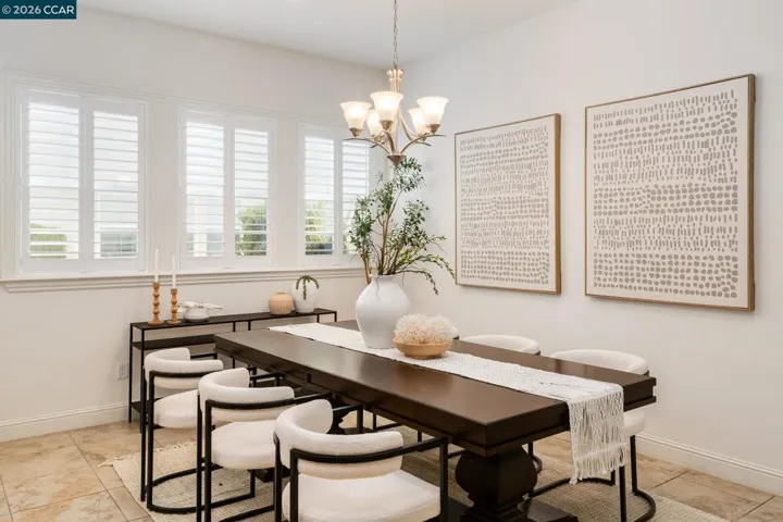 Stunning Toll Brothers residence in the highly sought-after Gale Ranch community of San Ramon. This newer-construction home offers 3,691 sqft of thoughtfully designed living space with 4 beds, 4.5 baths, & a versatile loft. High ceilings, hardwood & engineered wood floors, plantation shutters, & a built-in surround sound system elevate the interior. Desirable main-level bedroom with full bath, along with a junior suite, provides flexibility for guests or multigenerational living. Additional features include solar system, water softener, EV prewire outlet, & epoxy-finished garage flooring. The chef’s kitchen showcases newly painted cabinetry, granite countertops, oversized island with bar seating, & built-in stainless steel appliances. An open-concept layout flows seamlessly into the family & dining rooms, while stackable sliding doors open to a California room for effortless indoor-outdoor living. Private primary retreat with an oversized bedroom, large walk-in closet, & spa-like bath with dual sinks, soaking tub, & spacious walk-in shower. A second-level loft adds flexibility, while the expansive third-level media room & den includes an office area, half bath, & a large enclosed patio with sweeping views, ideal for work or entertaining. Conveniently located off Dougherty Rd.