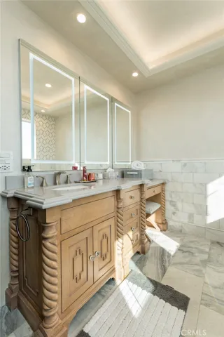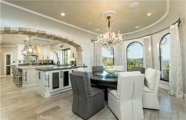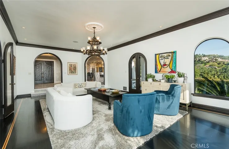 Perched above historic Verdugo Viejo, Lorelei is a rare and commanding Spanish Revival estate offering timeless architecture, exceptional privacy, and sweeping panoramic views stretching from downtown Los Angeles across Glendale and Burbank to the San Gabriel Mountains—and, on clear days, the Pacific Ocean. Originally constructed in 1929 by renowned architect Peter Damm, the main residence spans approximately 7,700 square feet and is thoughtfully designed to honor its historic character while accommodating modern living. A grand gated courtyard with hand-painted Spanish tile and a tranquil fountain sets an unforgettable arrival. Inside, arched doorways, Venetian plaster walls, trellis-pattern marble floors, and rich hardwoods define the home’s authentic craftsmanship. The formal living room is anchored by dramatic windows framing the skyline, while the adjacent family room features an original hand-carved stone fireplace. Entertaining spaces flow effortlessly into a refined formal dining area and a sunlit gourmet kitchen equipped with high-end appliances, breakfast nook, and garden views. The primary suite is a private retreat with commanding vistas, balcony, walk-in closet, spa-inspired bath, and adjacent office or nursery. A private gym and dance studio, discreetly located below, completes the owner’s wing. The estate functions as a true compound, offering a spacious guest house with kitchen and living room, an additional pool house or office, and separate staff or guest accommodations—ideal for extended stays or multigenerational living. Outdoors, lush multi-tiered grounds surround a resort-style pool and spa, multiple dining terraces, and an expansive cabana featuring a full outdoor kitchen, heaters, and built-in entertainment—perfect for intimate gatherings or large-scale events. A private wine cellar and adjoining game room add a final layer of character, reinforcing the home’s legacy as a residence designed for both elegance and enjoyment. A rare opportunity to own a historically significant, view-driven Spanish estate—private, cinematic, and truly irreplaceable.