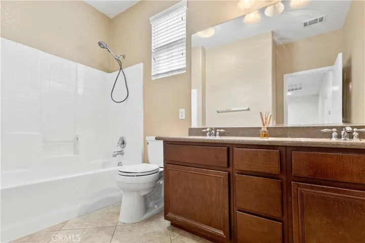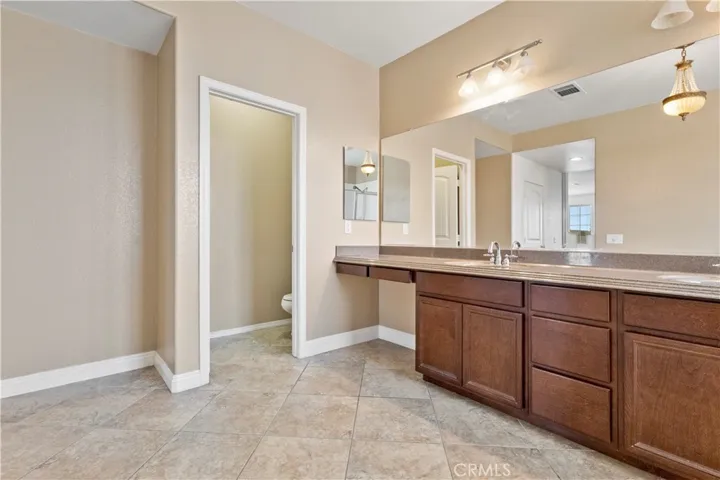 The backyard is a true private retreat, featuring a covered patio, custom saltwater pool and spa with security gate, and a tiered astro-turfed area anchored by a mature California Pepper tree. Enjoy sweeping valley views with no rear neighbors. Low HOA dues provide access to outstanding community amenities, including sports fields, basketball, baseball, football, and tennis courts, a dog park, and children’s playground.