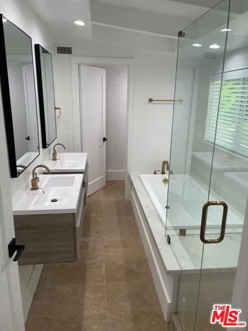 Mid century Gated 4 bedroom 4 bath, fully renovated home on a very private street off of Mulholland. Lots of light and beautiful canyon views from almost every room in this home. Private and serene with Zen court yard with pond. Large grassy yard with BBQ area. Open floor plan includes living room, dining room, and gourmet kitchen. Studio garage. Also for sale.