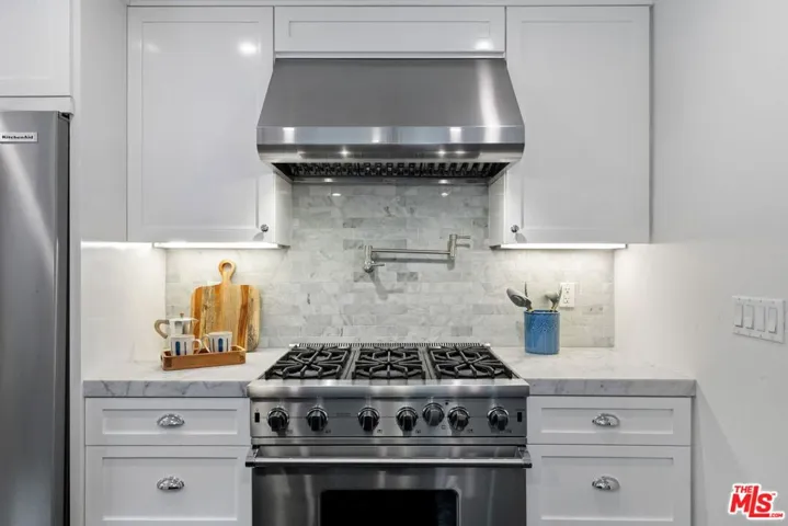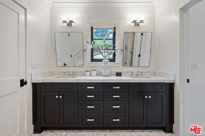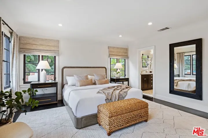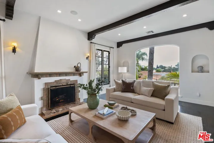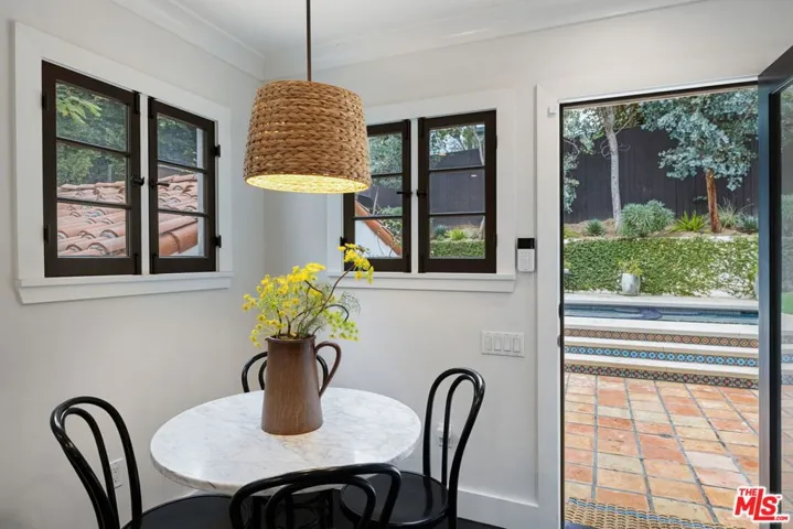 Magnificent 4 bedroom / 4 bath Spanish Revival pool home North of Los Feliz Blvd. and close to Griffith Park trailheads has been meticulously restored to offer all the modern conveniences while preserving historical details, including a Batchelder tile fireplace, exposed hand-painted wooden beams, and authentic ironwork and magnesite stairs. Modern upgrades include Sonos music system, 4 camera security system, an automatic gate and garage door that can be remotely controlled, and Nest thermostat. The sparkling salt-water pool & hot tub were added in 2020 and are surrounded by lush green outlooks and beautiful architecture. The hand-painted Talavera tile at the waterline and on the stairs near the pool and the private gardens add to the ambiance. The locking automatic safety cover keeps the pool warm and people and pets safe. Enjoy a relaxing swim because the pool equipment is in the garage – no noise around the pool! Turn on the hot tub on the way home from your phone for immediate relaxation. Los Feliz, Atwater Village and Silver Lake shops and restaurants are all close by as is the Greek Theater. Other features of this home include a light-filled primary suite with spa-like bathroom and two walk-in closets, both a formal living and dining room, and a basement that is perfect for a home office and den. Parking is easy with a detached 2-car garage with 220v behind an automated gate, Comfortable modern convenience while maintaining the scale, beauty, and nostalgia of old Hollywood, this is a truly special home that you won’t want to miss.