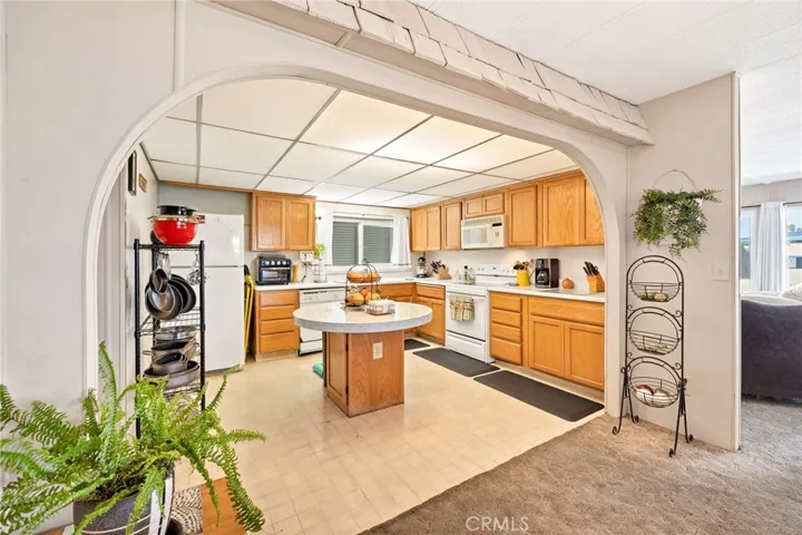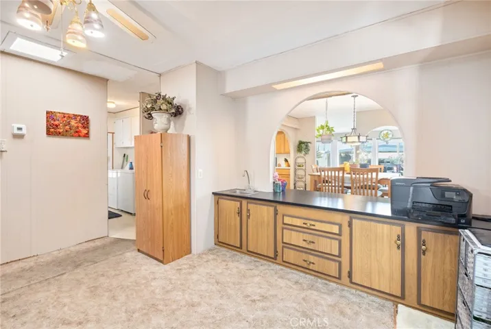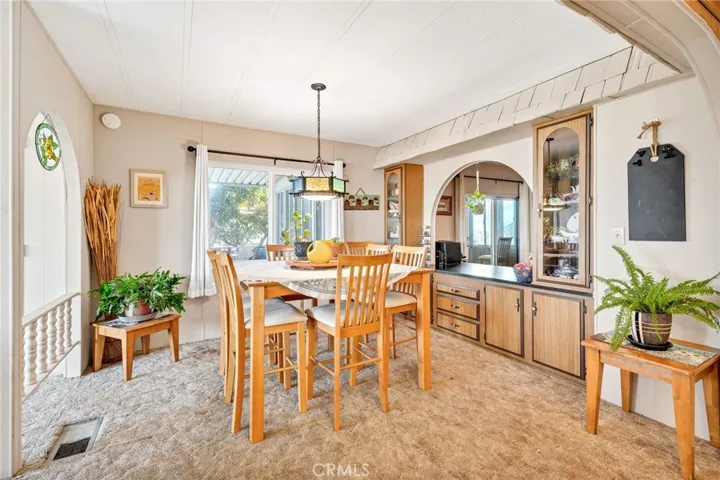 Welcome to 1735 San Marcos in the 55+ community of Sierra Dawn South, where you own the land and enjoy an active senior lifestyle. Offering 2 bedrooms, 2 bathrooms, and 1,440 sq ft of living space, this 1975-built home combines generous square footage with functional design and an excellent location close to the clubhouse. An inviting open front porch welcomes you into the home, leading to a spacious living room filled with natural light and enhanced by newer dual pane windows throughout. The dining area features a built-in china cabinet, adding both charm and practical storage. The kitchen is well-appointed with a center island, abundant cabinetry, and ample counter space, opening to a flexible den area that can easily serve as a home office or hobby room. Both bedrooms are good-sized and include overhead ceiling fans for comfort. At the rear of the home, an enclosed patio room provides additional usable space—ideal for relaxing, entertaining, or enjoying year-round versatility. Exterior highlights include a long covered carport with a storage area at the end, offering both convenience and functionality. Located close to the clubhouse, residents of Sierra Dawn South enjoy a vibrant senior community with numerous activities, social events, pools, fitness facilities, and recreational amenities. HOA dues are approximately $185 per month. A wonderful opportunity to enjoy affordable homeownership, active living, and the benefit of owning the land in one of Hemet’s established 55+ communities.