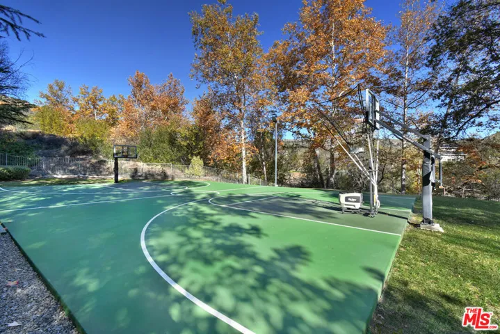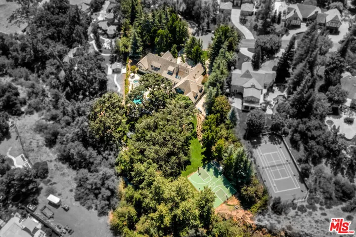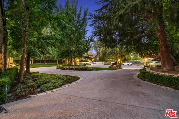Set behind the exclusive gated community of Medea Valley Estates, 29105 Old Mill Creek is one of those properties that rarely comes along. Set at the end of a quiet cul-de-sac on over 1.8 usable acres, this 11,000+ square foot estate offers privacy, scale, and a creative edge that makes it feel truly custom.The design embraces volume and light, with massive windows, French doors, and skylights bringing in natural light throughout. A formal entry sets the tone and leads into a striking living room centered around warming fireplace and wall of French windows framing views of the parklike backyard and pool, creating a seamless connection to the outdoors. The formal dining room is built to host. Generous in size with elegant proportions, it easily accommodates large gatherings while still feeling intimate for smaller dinners. Positioned to flow naturally from the main living areas and kitchen, it’s a space that works just as well for holidays and celebrations as it does for everyday meals. The chef’s delight kitchen is outfitted with top-tier professional appliances, custom cabinetry, marble countertops, and an expansive butler’s pantry. The chef’s kitchen opens to a sunlit great room boasting a breakfast area and adjoining game room. A standout custom office adds personality, complete with a professional bar, floor-to-ceiling brick fireplace, and a built-in seating area ideal for meetings or evenings with friends. For elevated entertainment, the home features a professional media room designed for a true cinematic experience. Tiered seating ensures every seat has a perfect view, while French doors allow the space to open for larger gatherings or remain closed for an immersive movie night. The main-level primary suite is both dramatic and serene, with soaring ceilings, fully customized designer closets, and a spa-caliber bath featuring a multi-head steam shower,separate soaking tub and dual water closets. A standout custom office adds personality, complete with a professional bar, floor-to-ceiling brick fireplace and seating area ideal for meetings or evenings with friends. For elevated entertainment, the home features a professional media room designed for a true cinematic experience. Tiered seating ensures every seat has a perfect view, while French doors allow the space to open for larger gatherings or remain closed for an immersive movie night. The backyard is where the property truly separates itself. Expansive lawns, mature Oaks, and multiple entertaining areas surround a sparkling pool and spa. A lighted sports court offers space for year-round recreation, while the natural creek running along the back of the property adds privacy and a peaceful, scenic backdrop. It feels like your own private park usable, secluded, and hard to replicate. A must see, you won’t be disappointed.